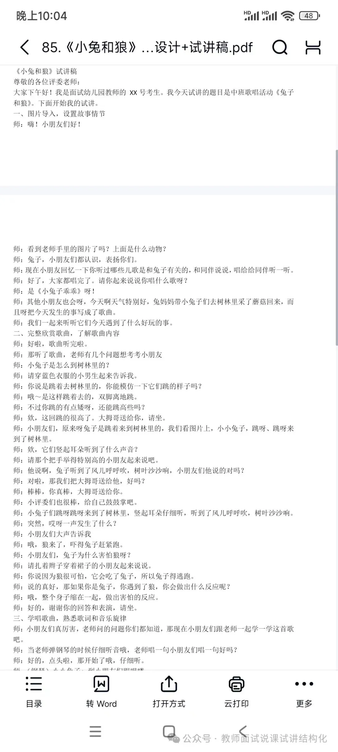 幼儿园《小兔和狼》试讲逐字稿