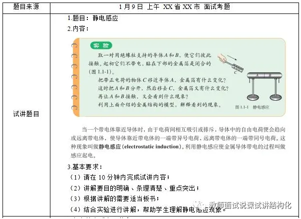 高中物理面试《静电感应》题目+教案+试讲稿+答辩
