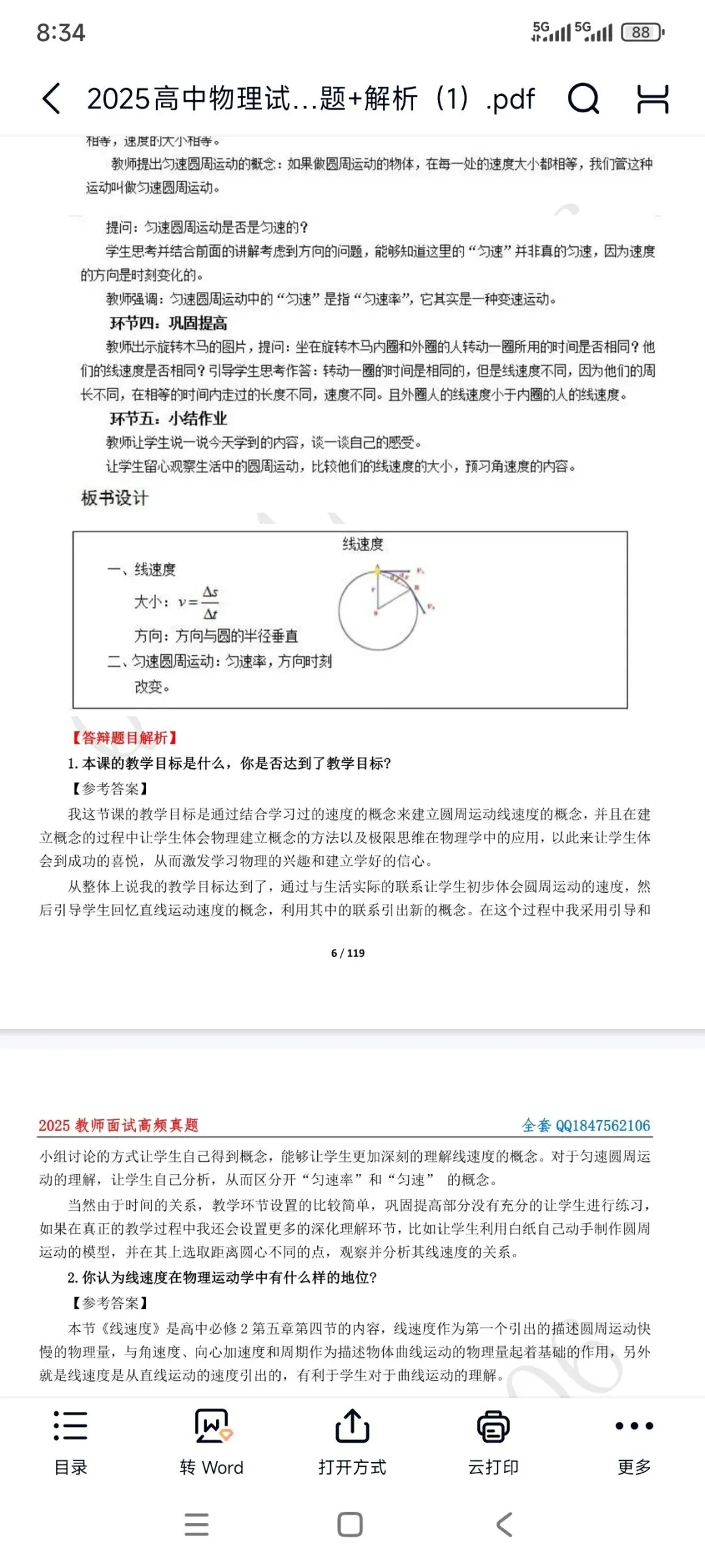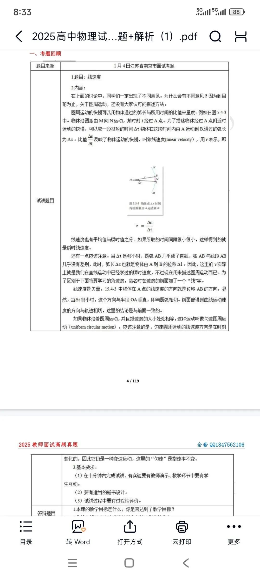 高中物理面试《线速度》题目+教案+试讲稿+答辩