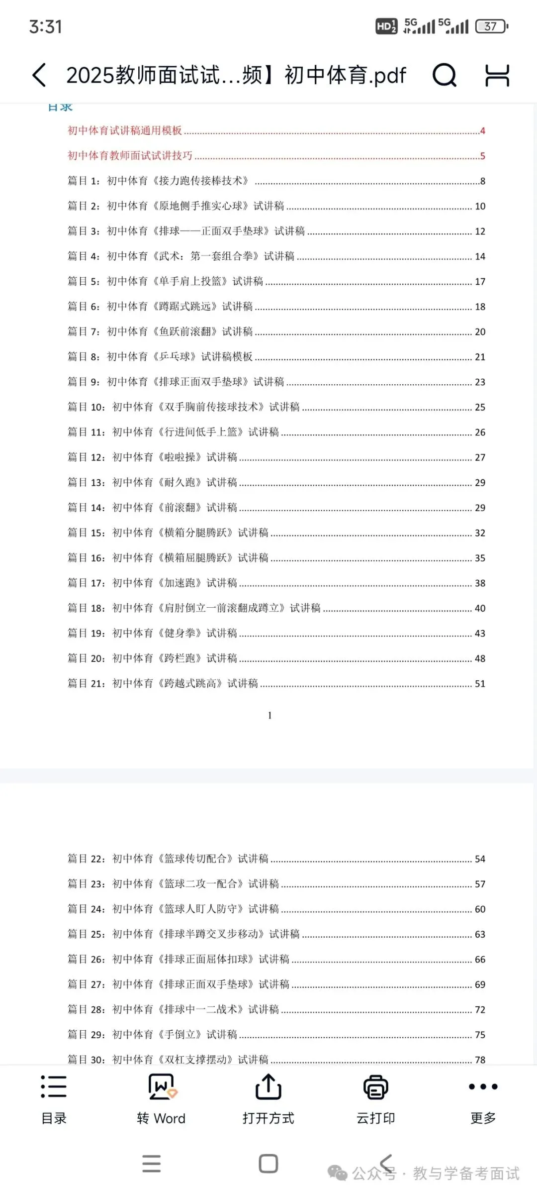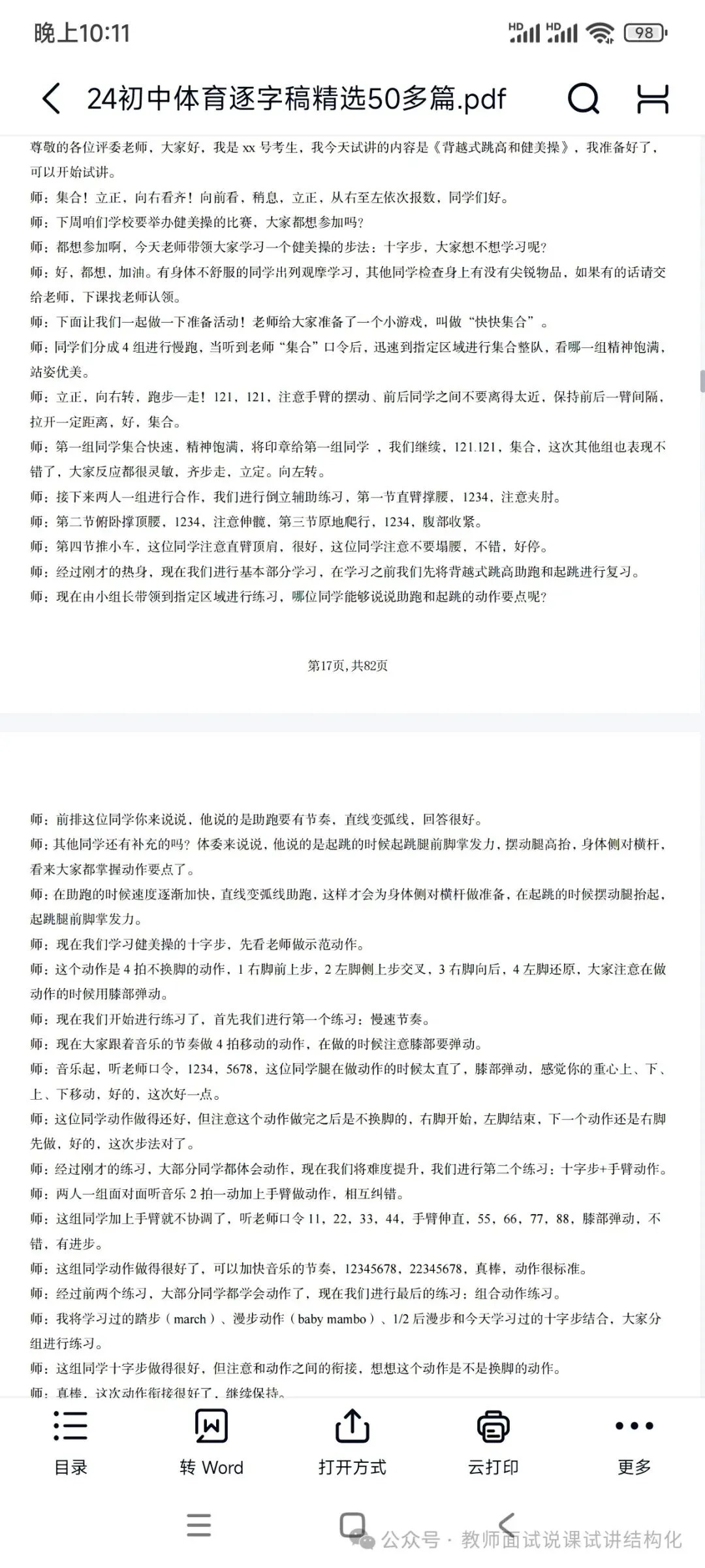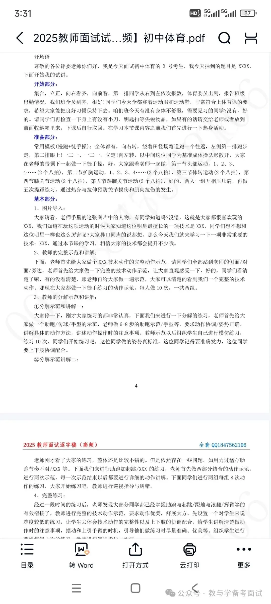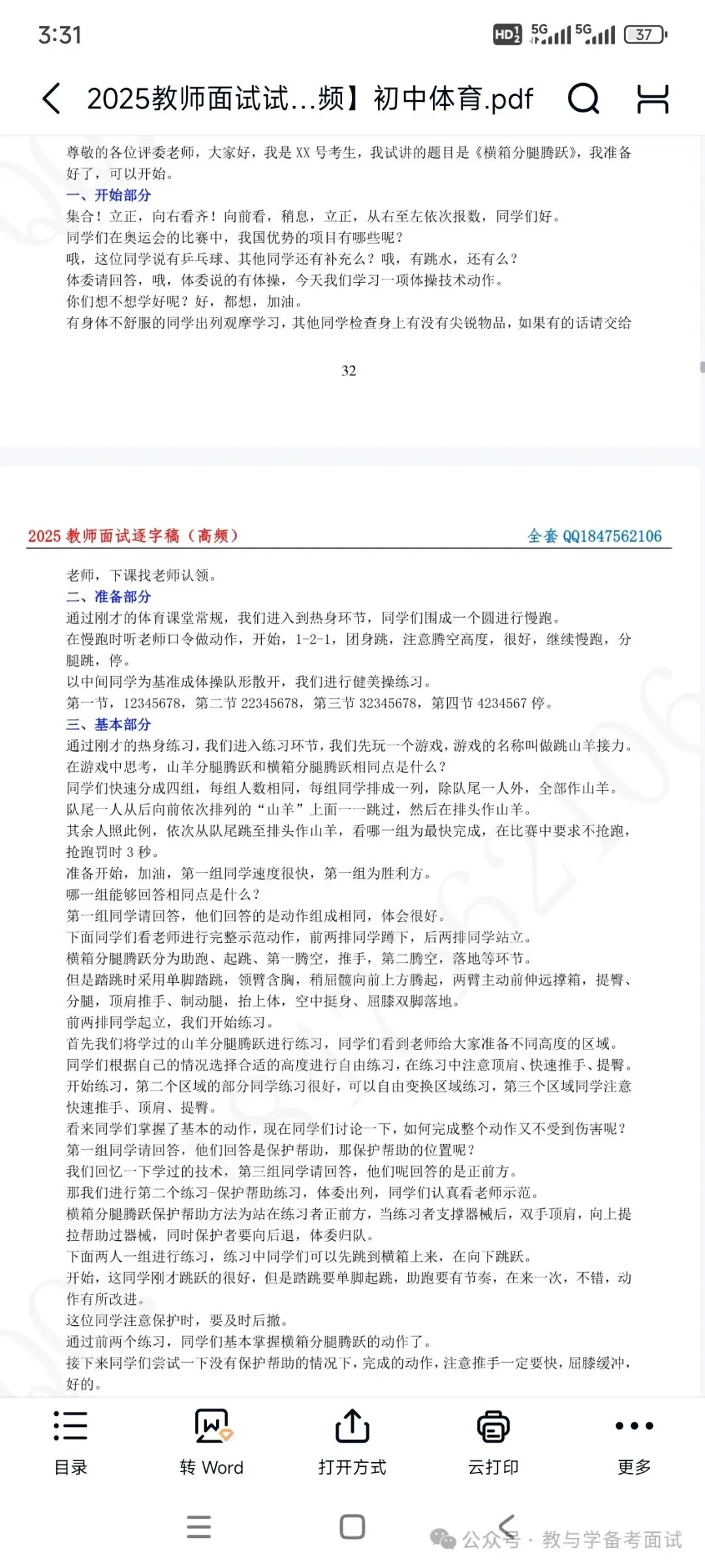 资料包括:初中体育试讲示范课+试讲逐字稿+试讲面试真题+答辩+结构化押题等