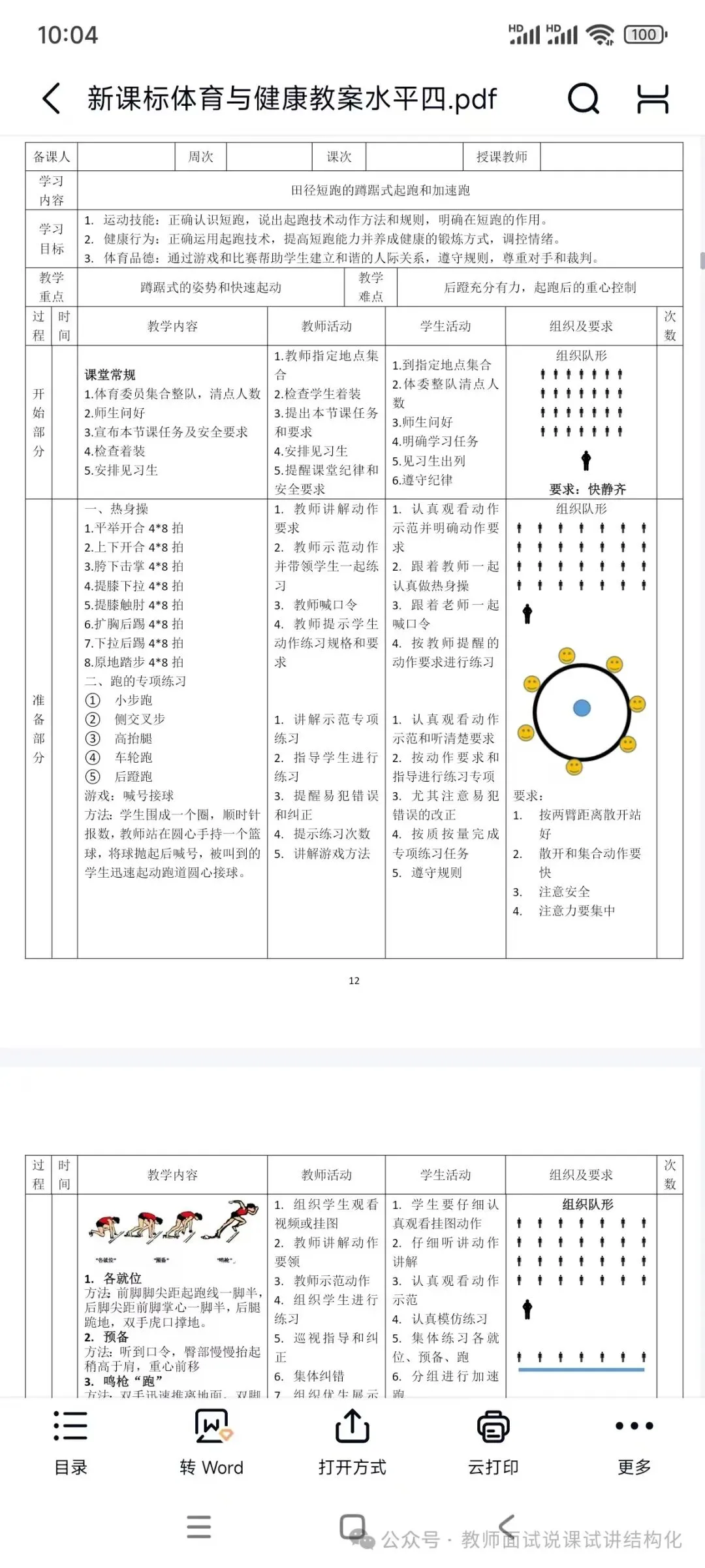 初中体育面试《高抬腿和快速跑》题目+教案+试讲稿+答辩