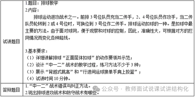 高中体育面试《"中一二”战术和正面屈体扣球》题目+教案+试讲稿+答辩