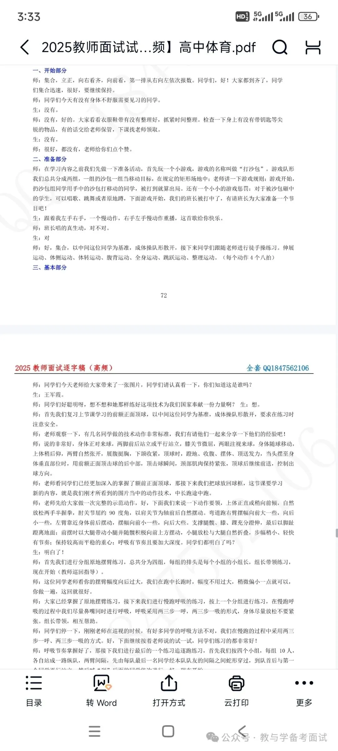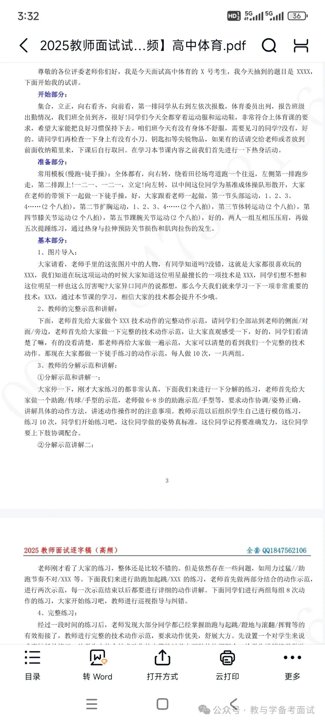 资料包括:高中体育试讲示范课+试讲逐字稿+试讲面试真题+答辩+结构化押题等