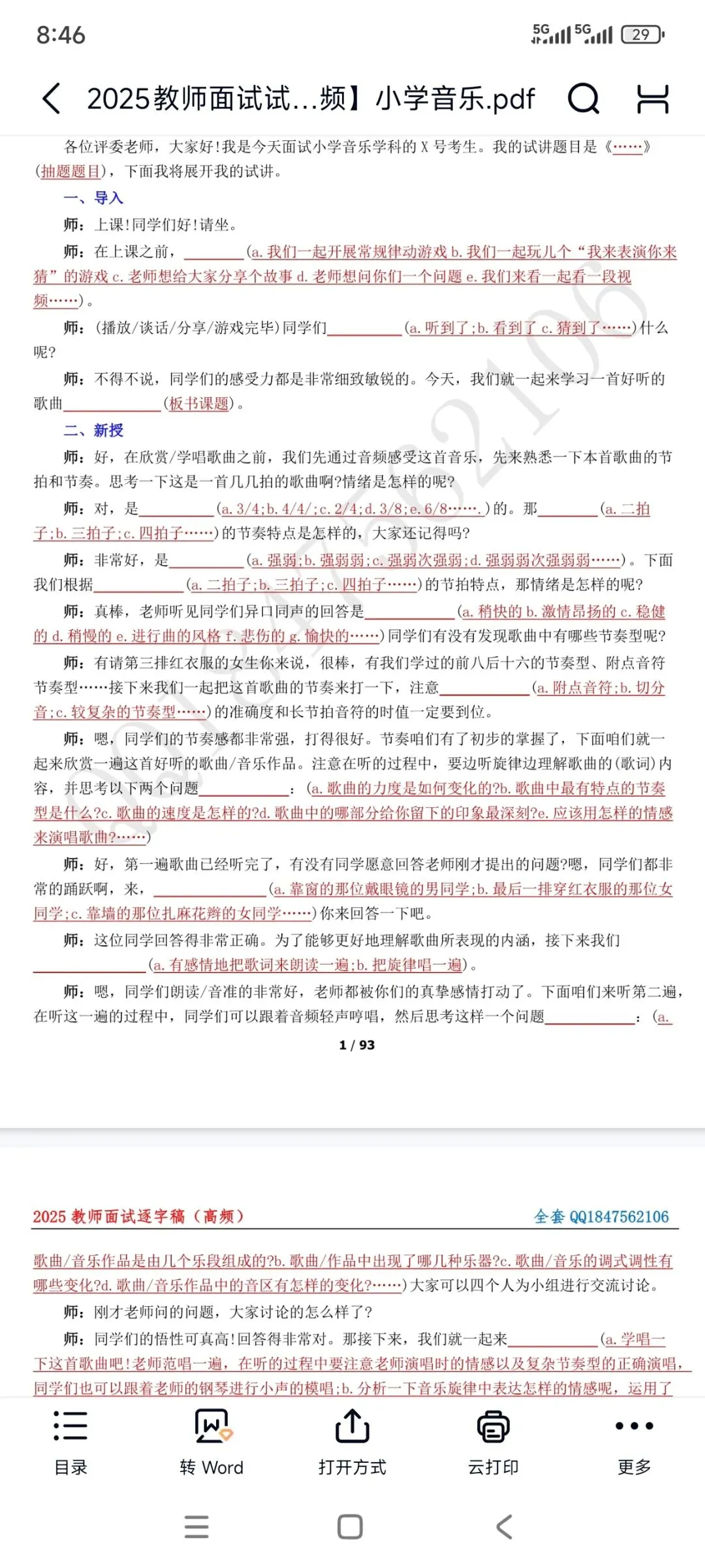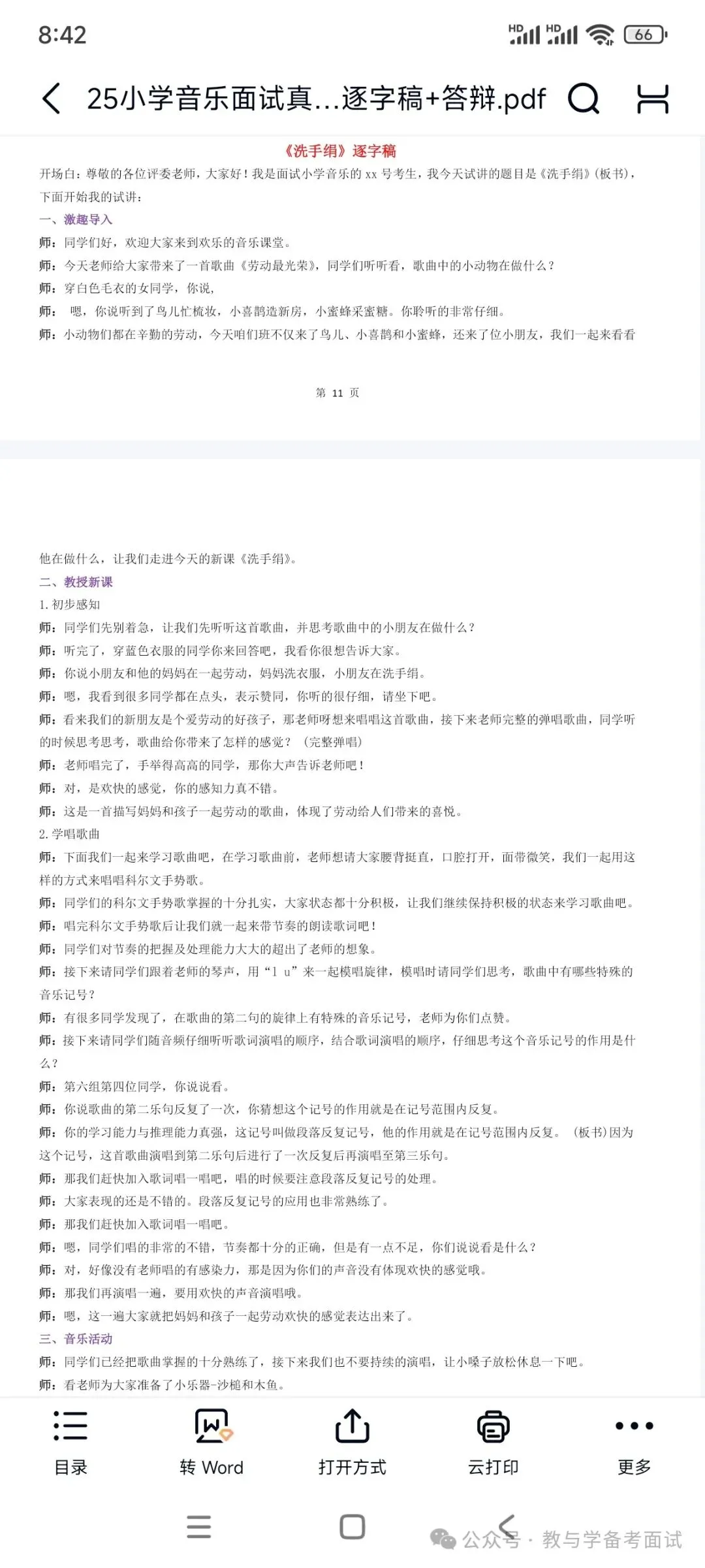 资料包括:小学音乐试讲示范课+试讲逐字稿+试讲面试真题+答辩+结构化押题等
