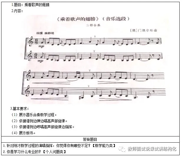 高中音乐面试试讲《乘着歌声的翅膀》逐字稿