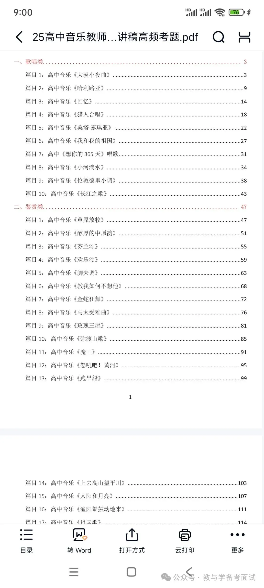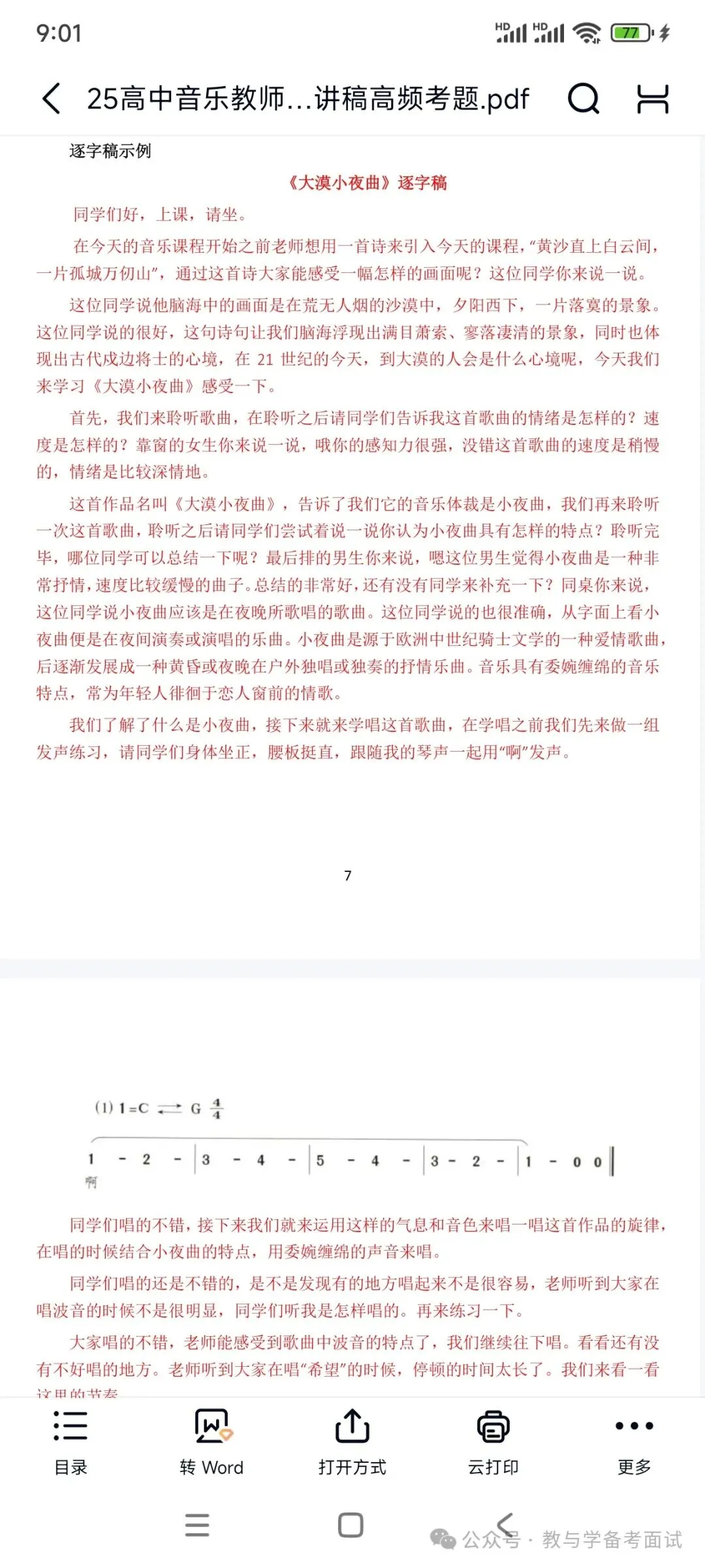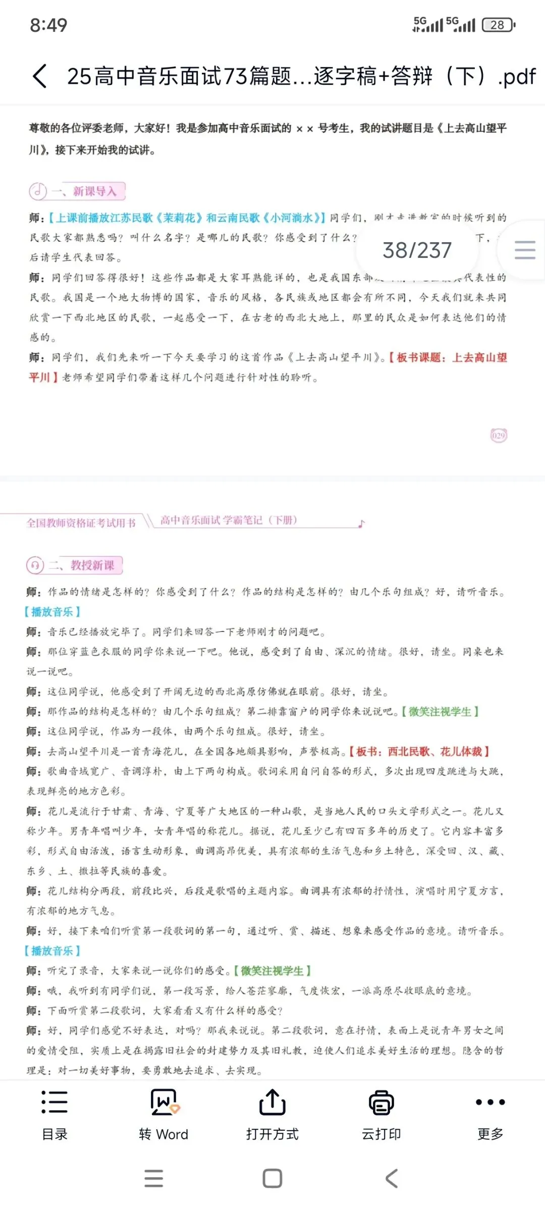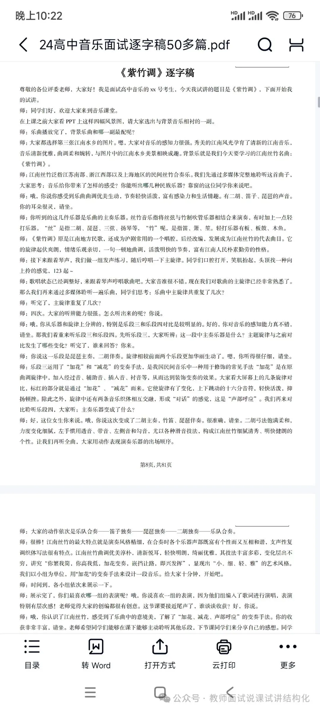 资料包括:高中音乐试讲示范课+试讲逐字稿+试讲面试真题+答辩+结构化押题等