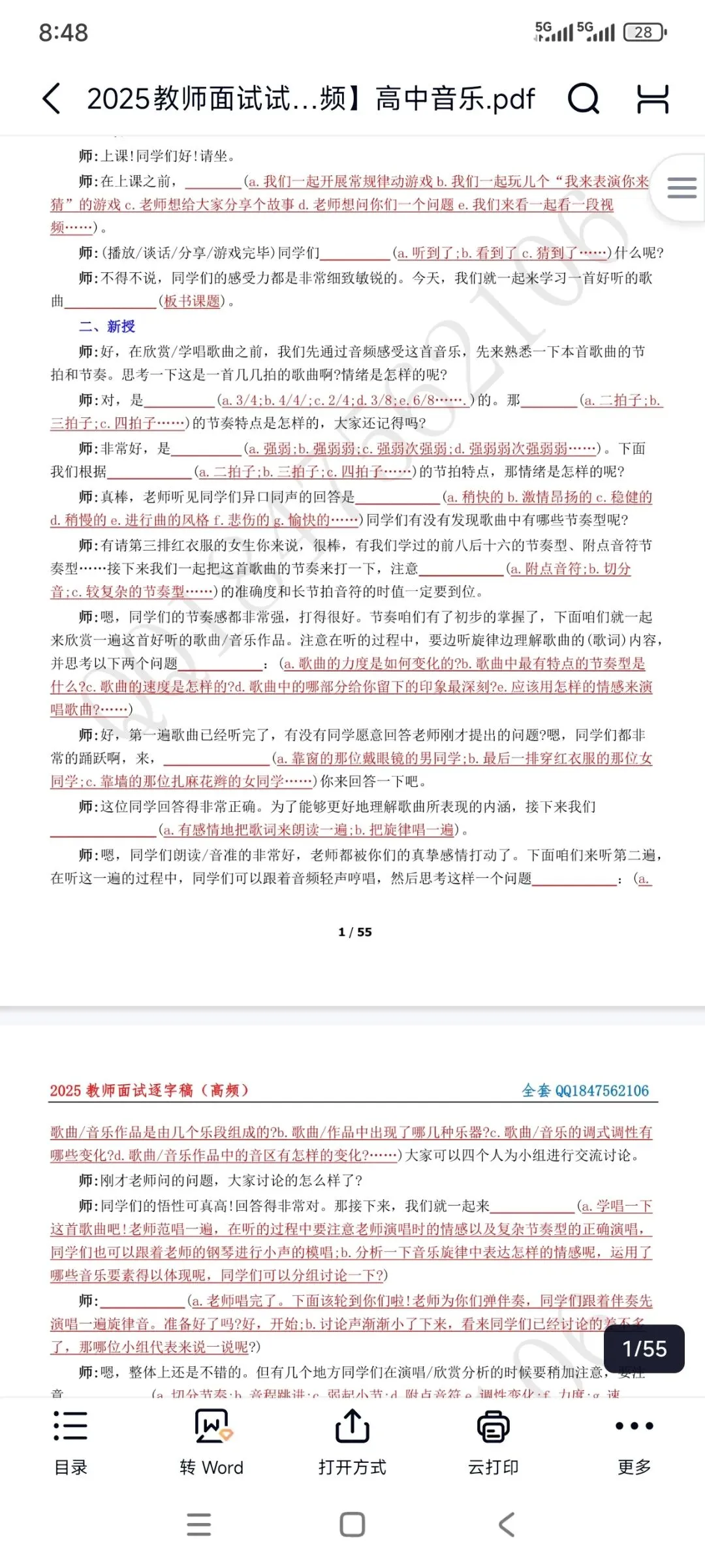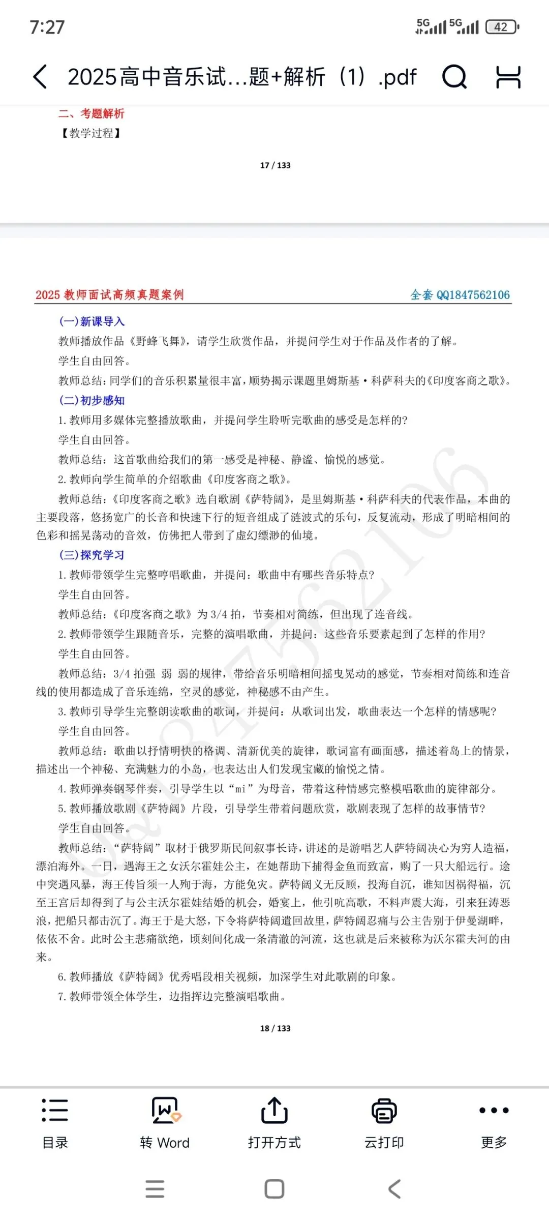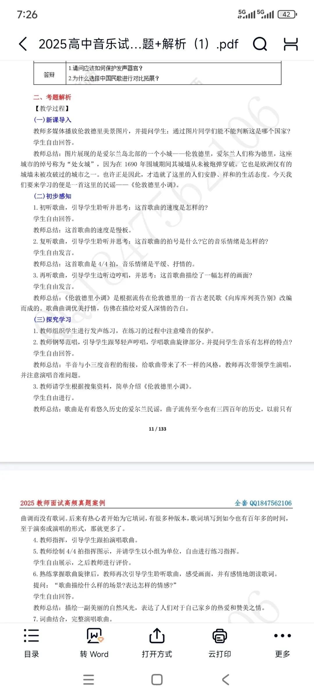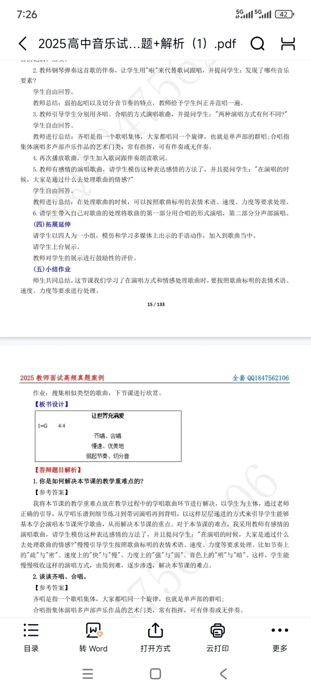 资料包括:高中音乐试讲示范课+试讲逐字稿+试讲面试真题+答辩+结构化押题等