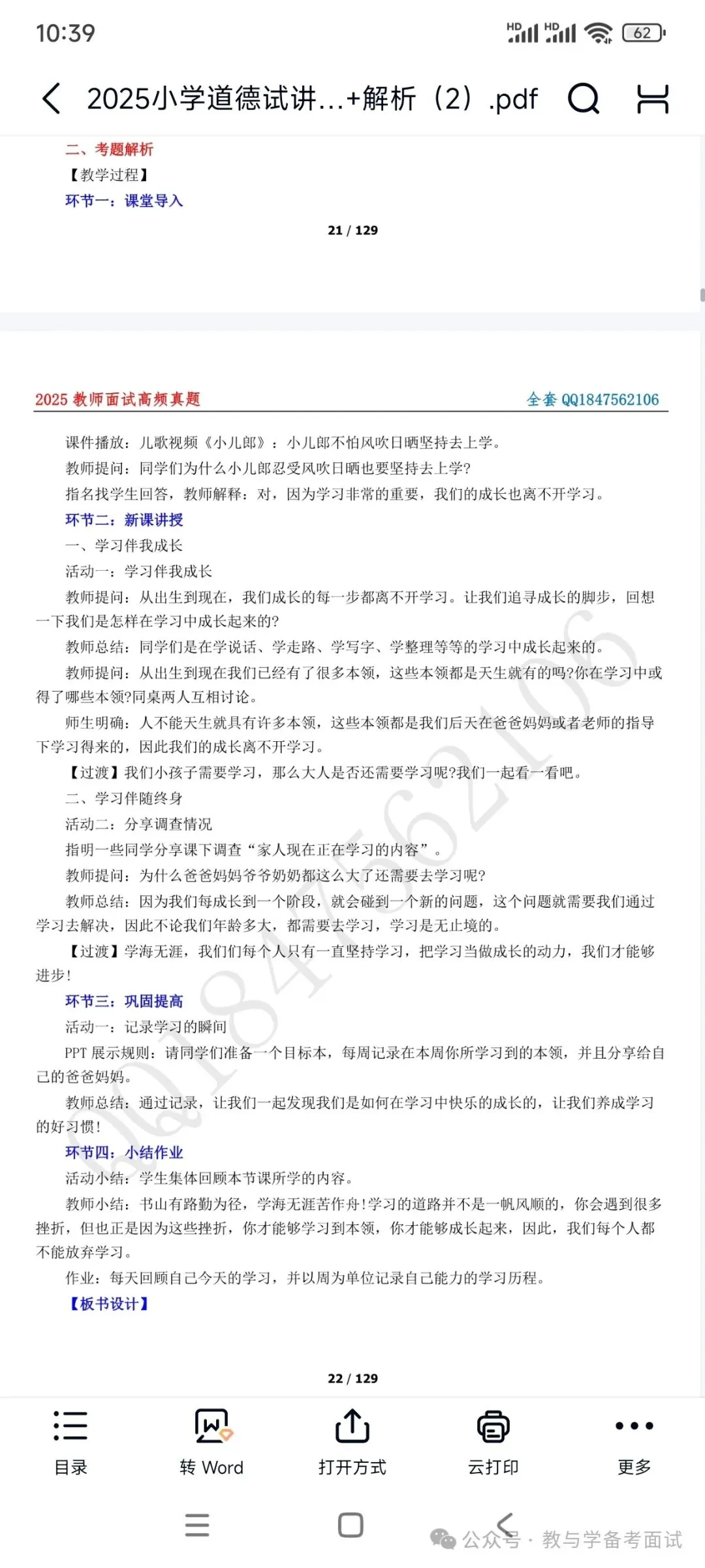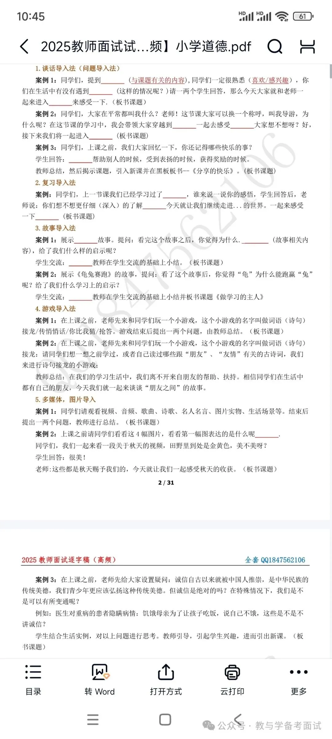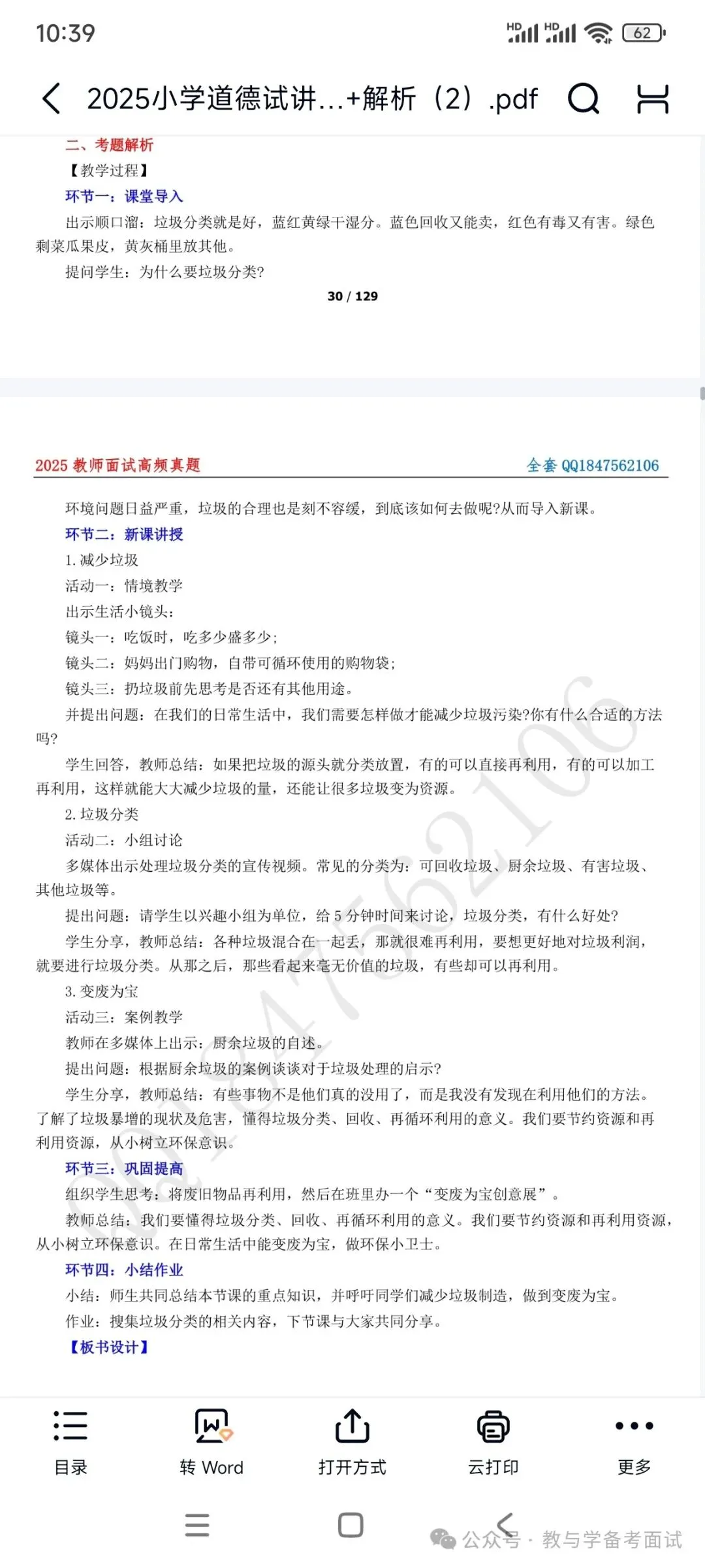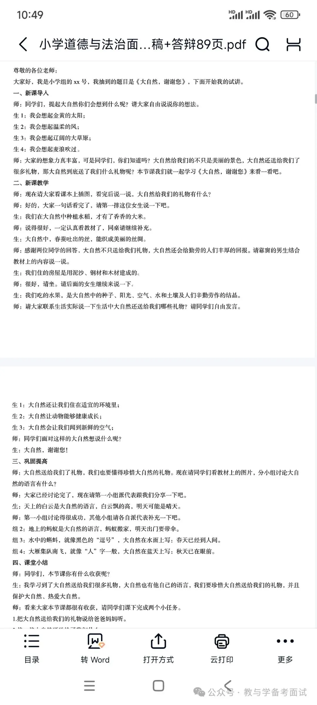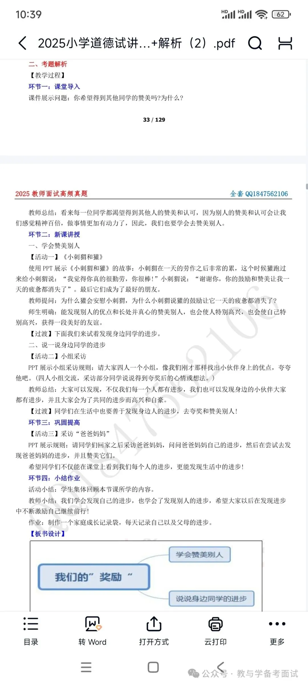 资料包括:试讲示范课+试讲逐字稿+试讲真题+答辩+结构化押题等