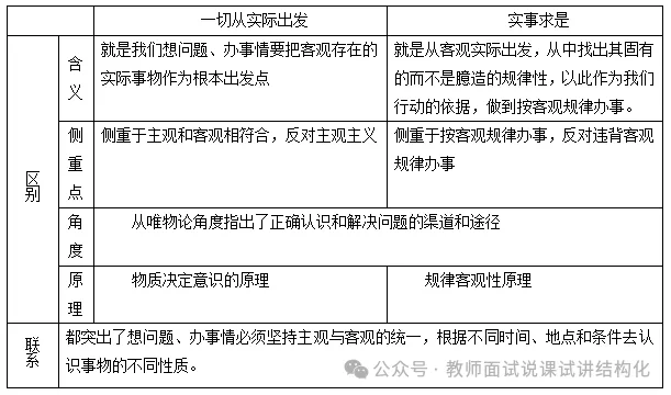 1.一切从实际出发的含义与实事求是的科学内涵。此概念是理解本节的基本观点,是学生能不能做到一切从实际出发的基本前提,也是理解本书其它观点的基础,为今后其它哲学常识的学习打下基础。
