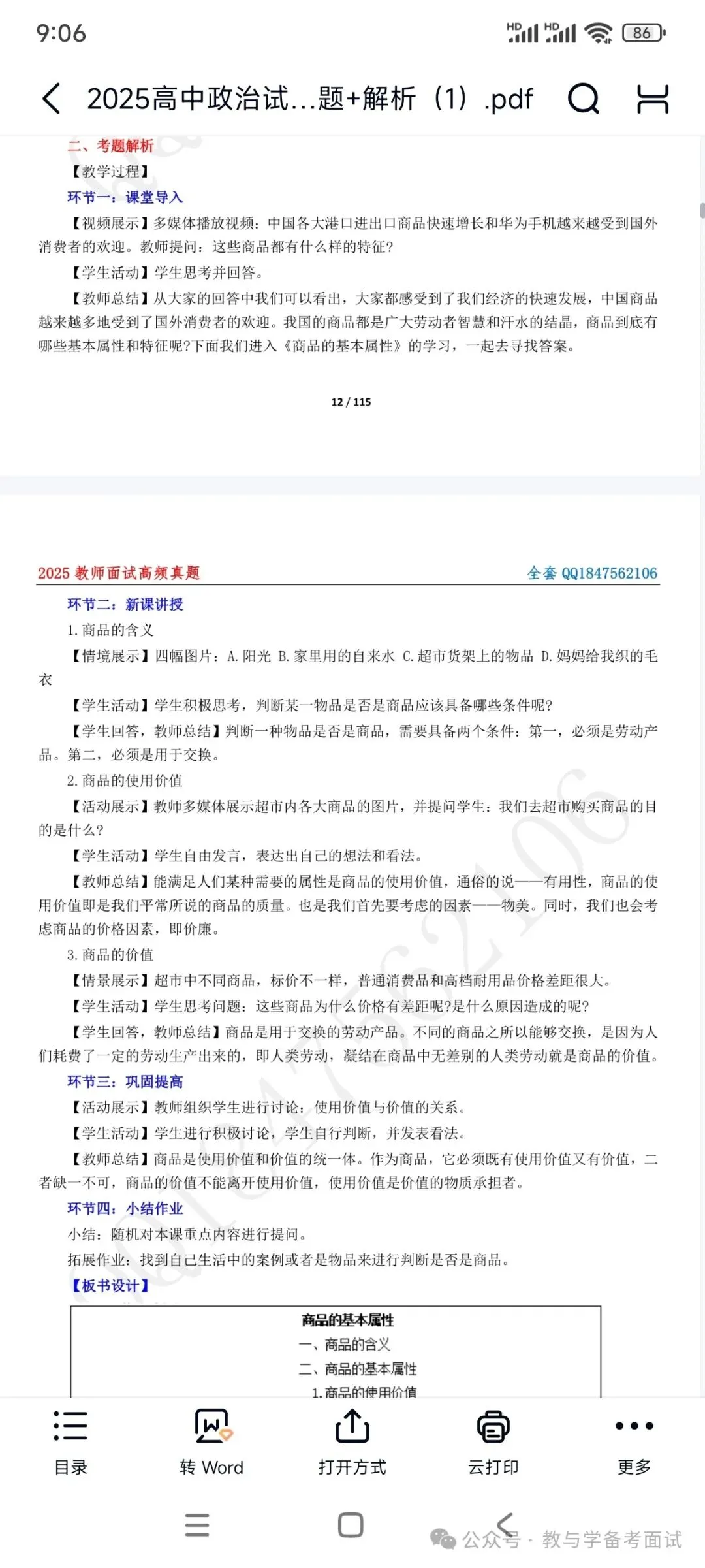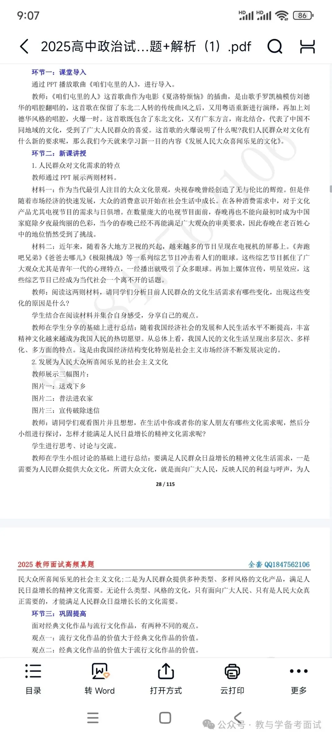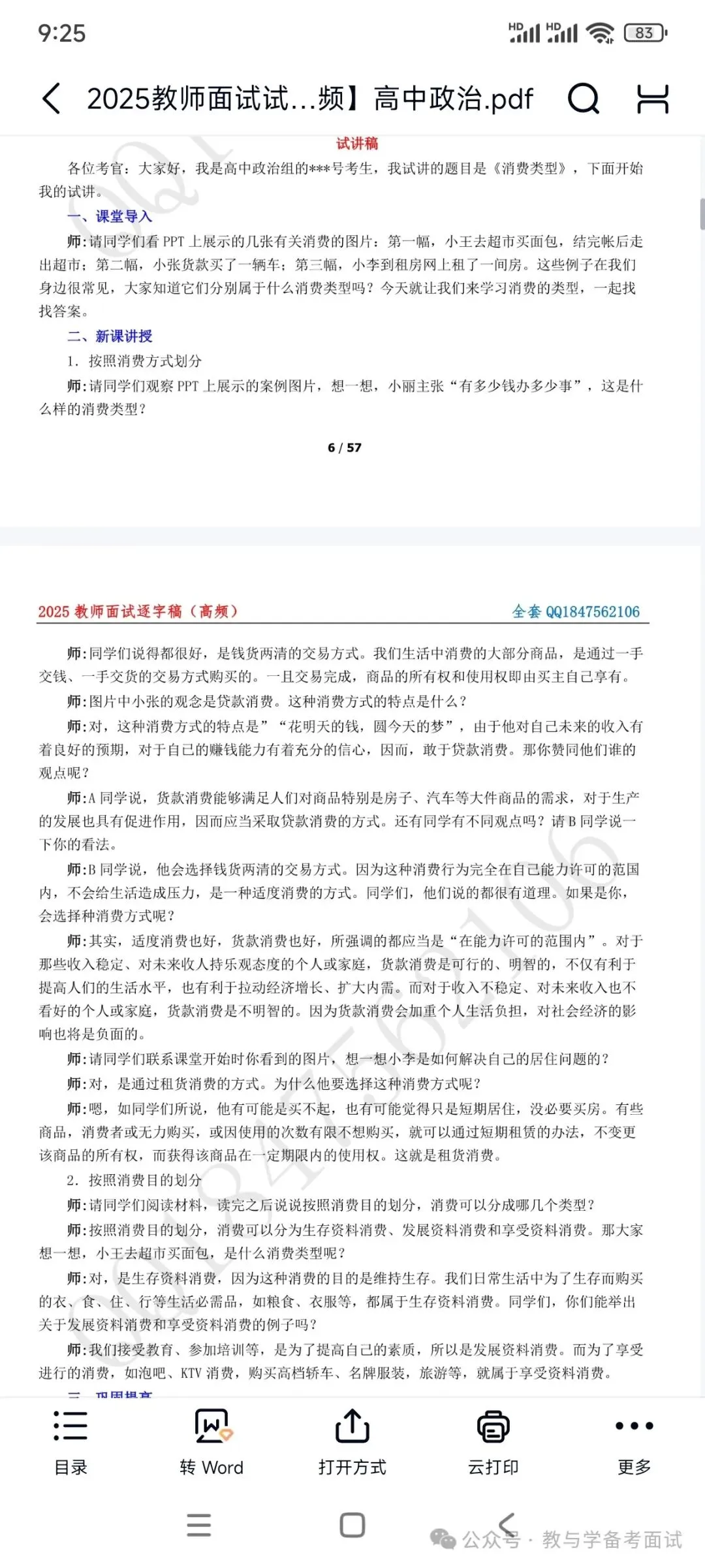 资料包括:试讲示范课+试讲逐字稿+试讲真题+答辩+结构化押题等