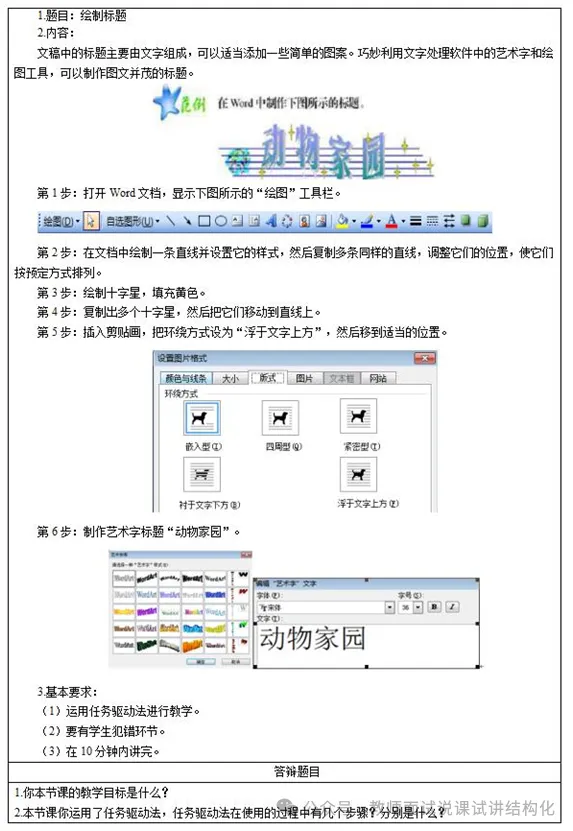 初中信息面试《编排文稿,绘制标题》教案+试讲逐字稿