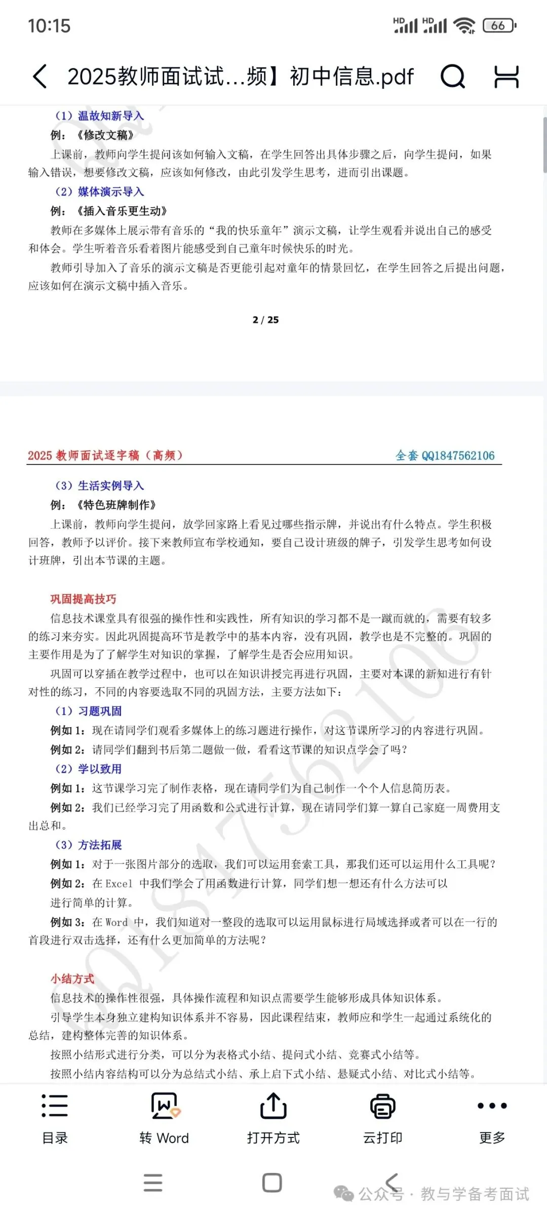 资料包括:试讲示范课+试讲逐字稿+试讲真题+答辩+结构化押题等