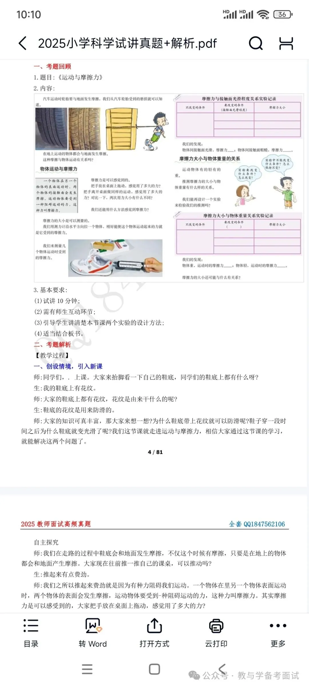 小学科学面试《运动与摩擦力》试讲逐字稿