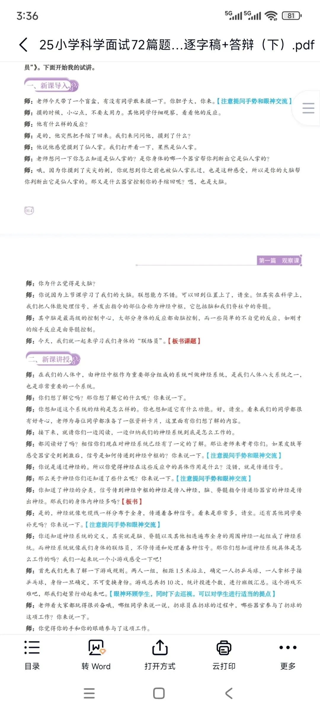 小学科学面试《身体的“联络员”》题目+教案+试讲稿+答辩