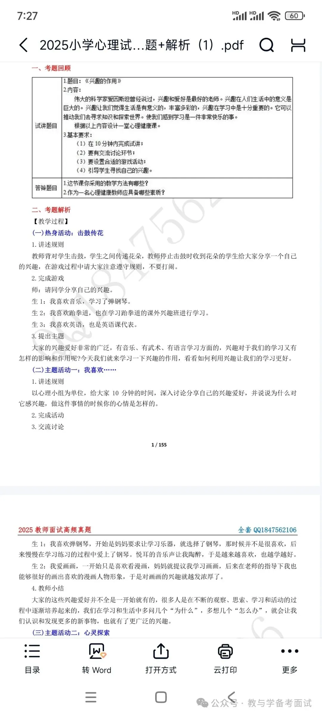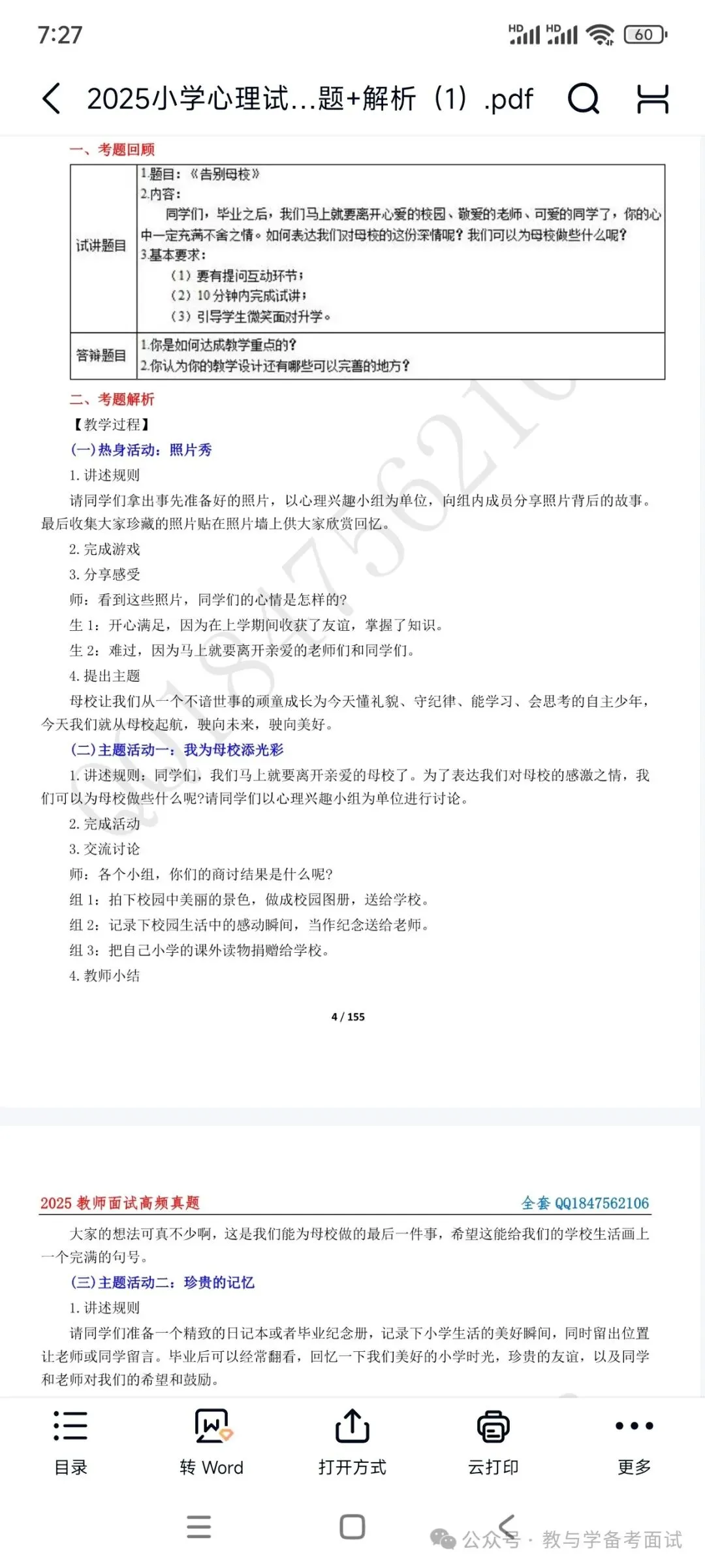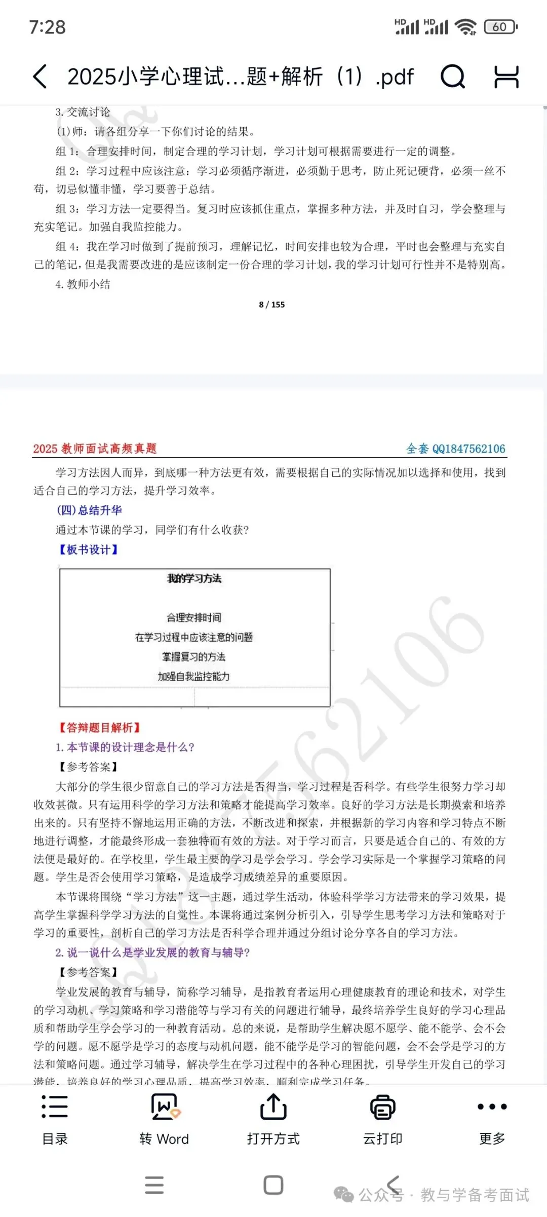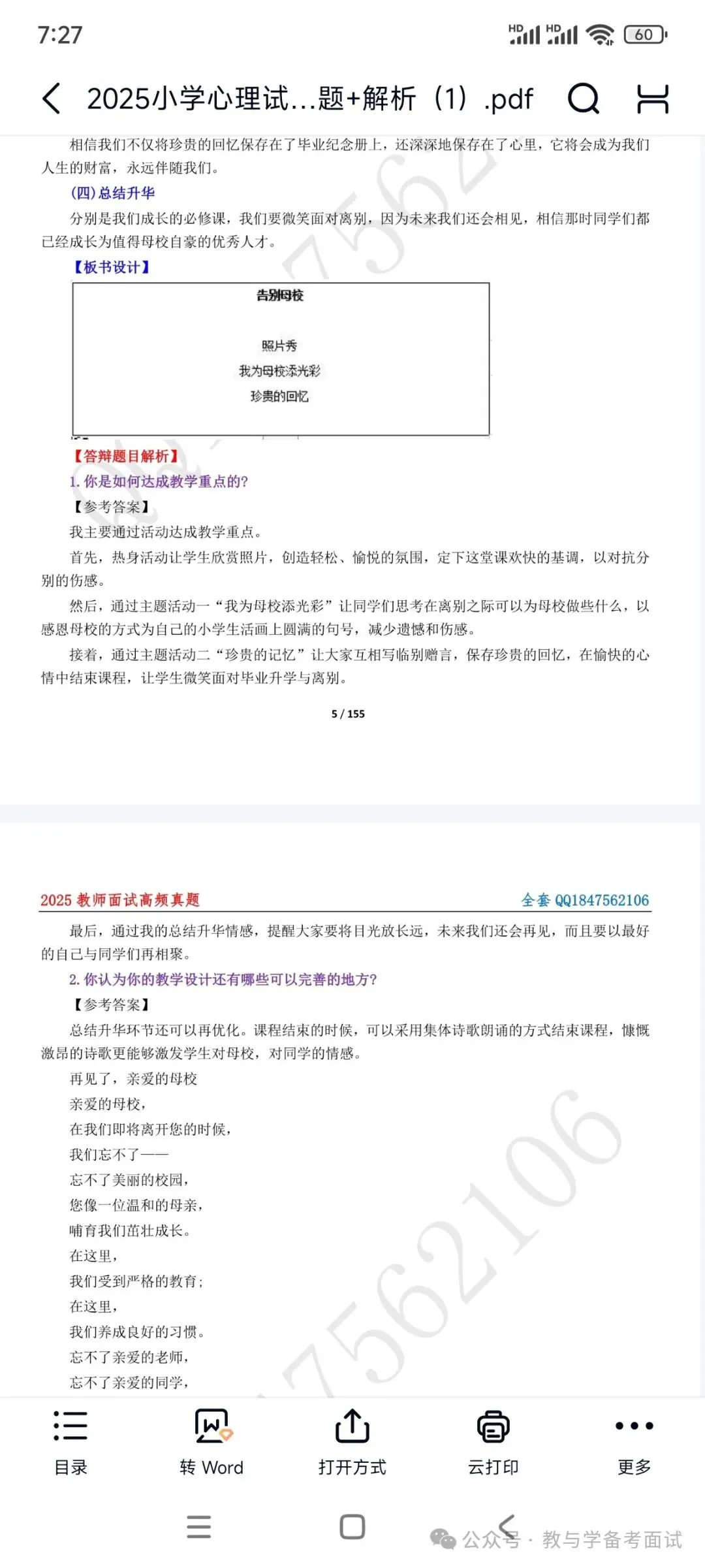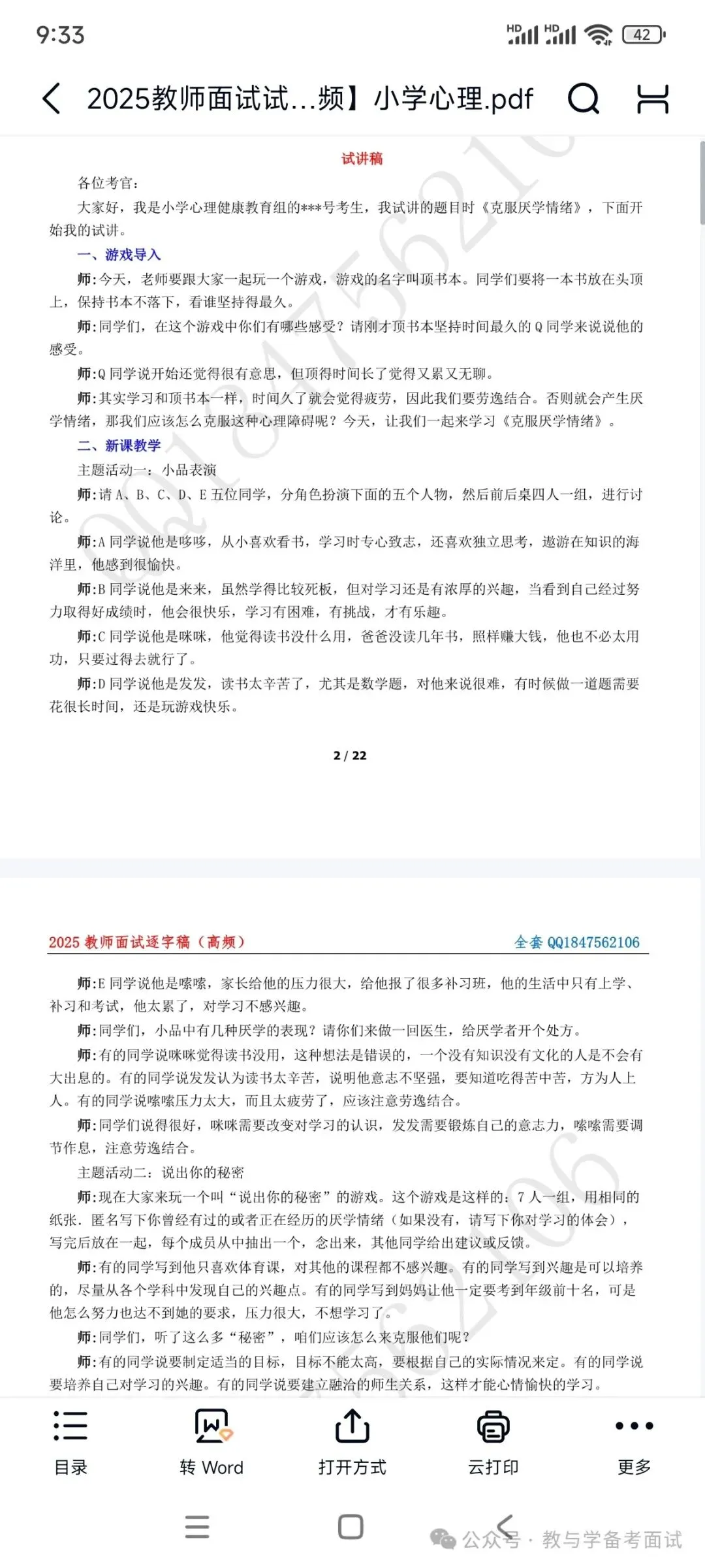 资料包括:试讲示范课+试讲逐字稿+试讲真题+答辩+结构化押题等