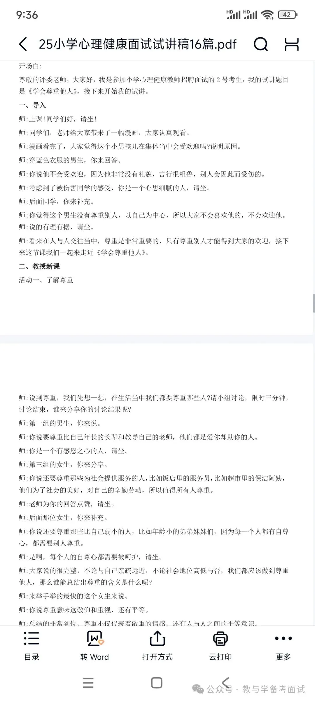 小学心理健康面试《学会尊重他人》试讲逐字稿