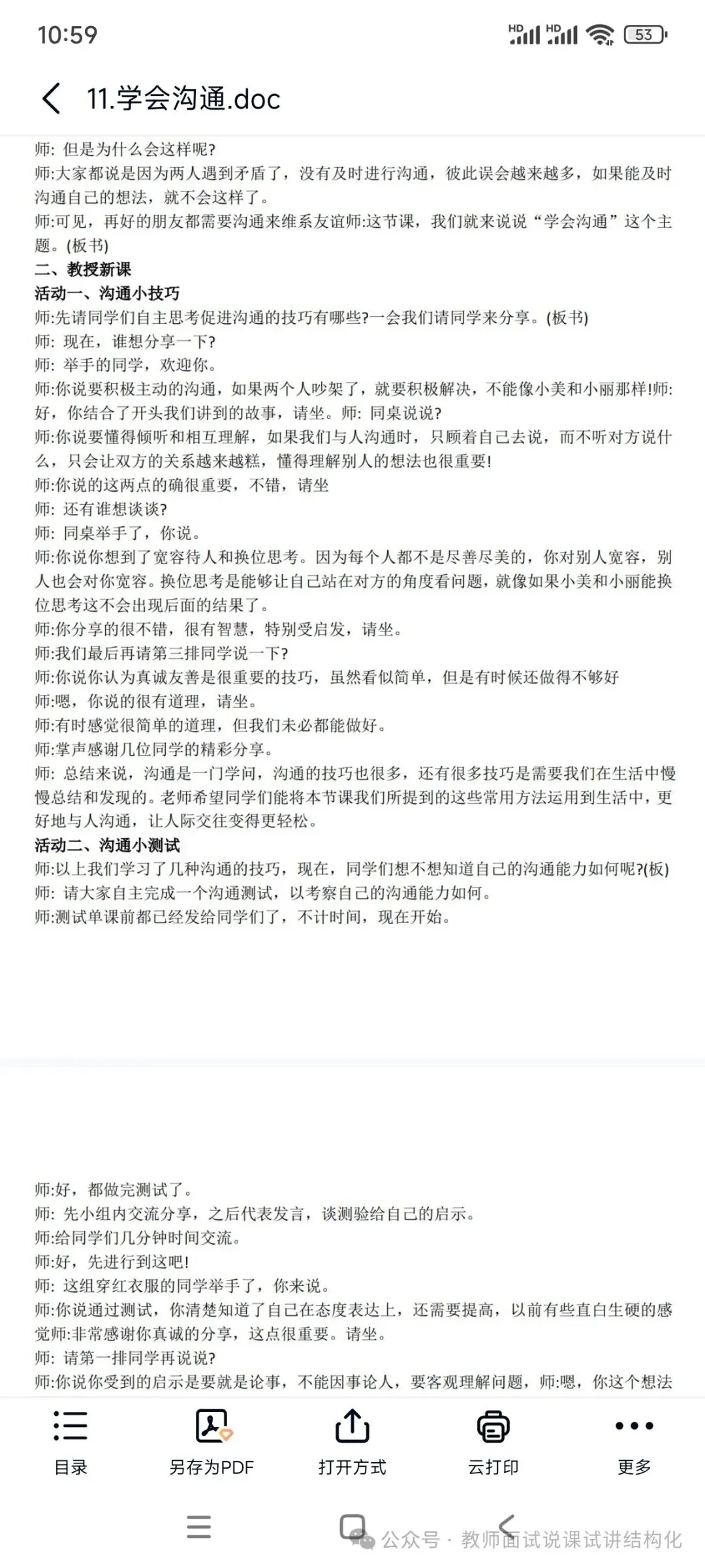 师:你说因为每个人的想法和表达方式不一样及时对于自己不清楚的地方进行提问,可以使得信息接收更加准确,所以说提问和回答是很重要的。