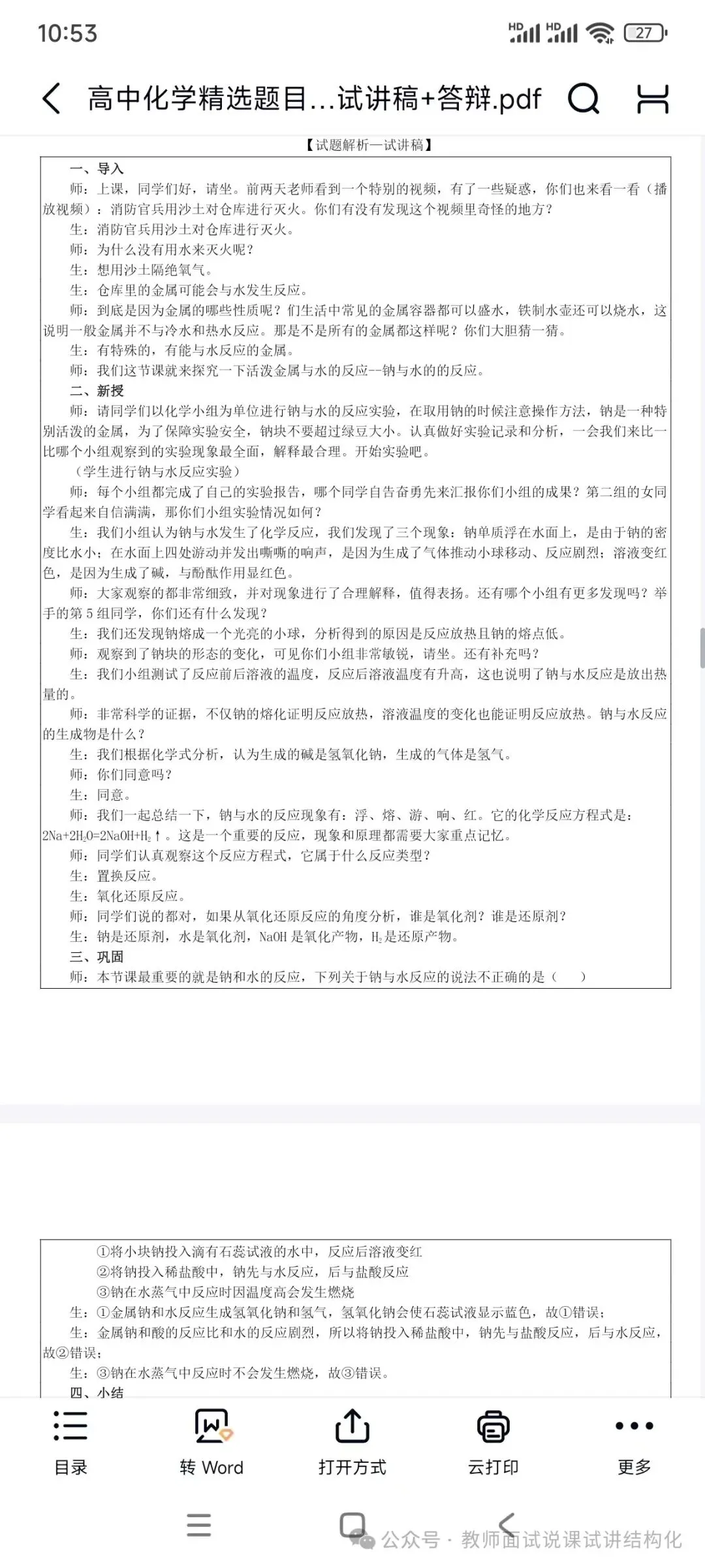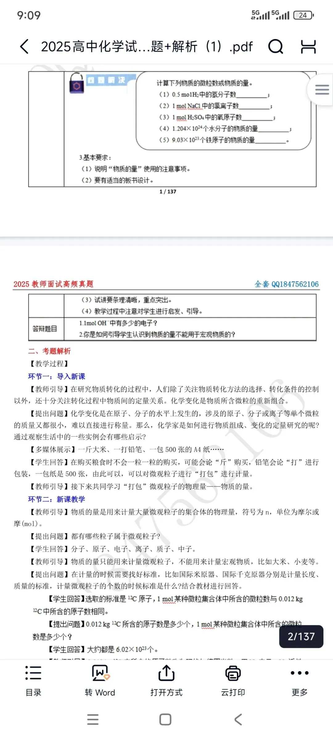 资料包括:高中化学试讲示范课+试讲逐字稿+试讲面试真题+答辩+结构化押题等