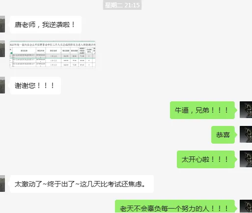 而且,唐老师会天天给我们分享各种真题和知识点,有时候凌晨还在发群消息。