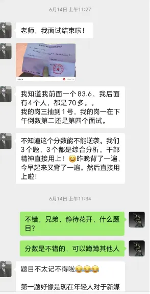 但是说归说,班上有两个大神同学,经过他调教,竟然在2025年六盘水事业单位面试环节以招二排五,笔试分差岗一19.5分的笔试逆境,去逆袭对手14分,班上同学称他为军神:一次押中两个题目是什么体验?2025年六盘水市事业单位面试考场第一、逆袭对手14分的面试经验分享!