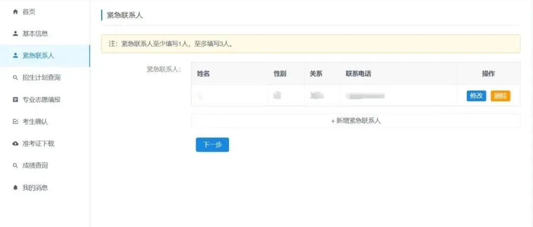 6. 填写紧急联系人