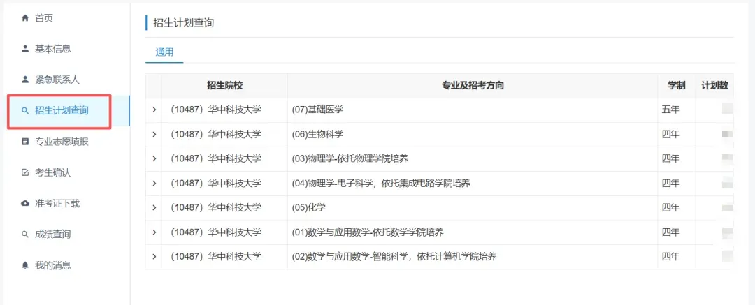 7. 查询招生计划