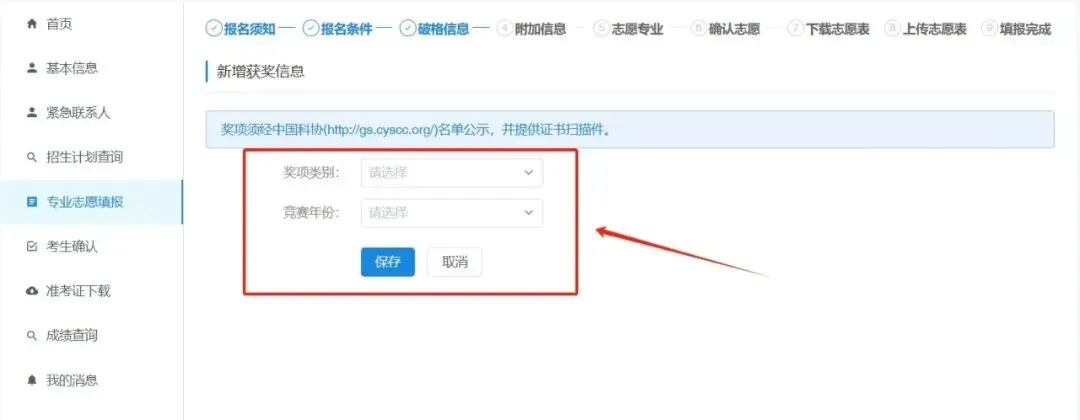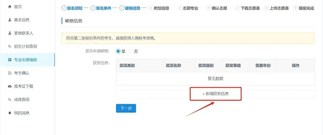 4. 选择是否申请破格