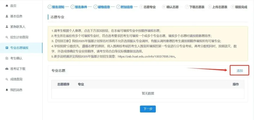 我校无附加信息要求,请直接点击“下一步”。
