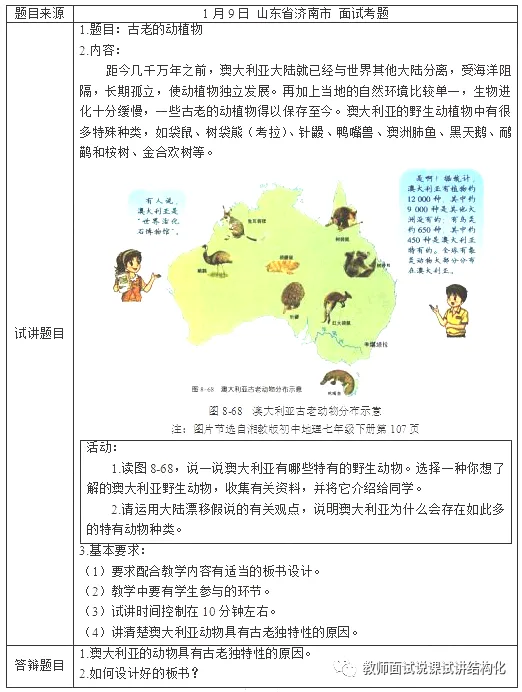 初中地理面试《澳大利亚世界活化石博物馆》题目+教案+试讲稿+答辩