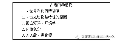 【教师总结】主要有三个原因:第一,澳大利亚长期处于孤立于海洋中,自然环境单一;第二,澳大利亚由于环境稳定,所以特有地球演化过程中保留下来的古老生物种类,它们虽显得原始;第三,动物缺少天敌,进化缓慢。