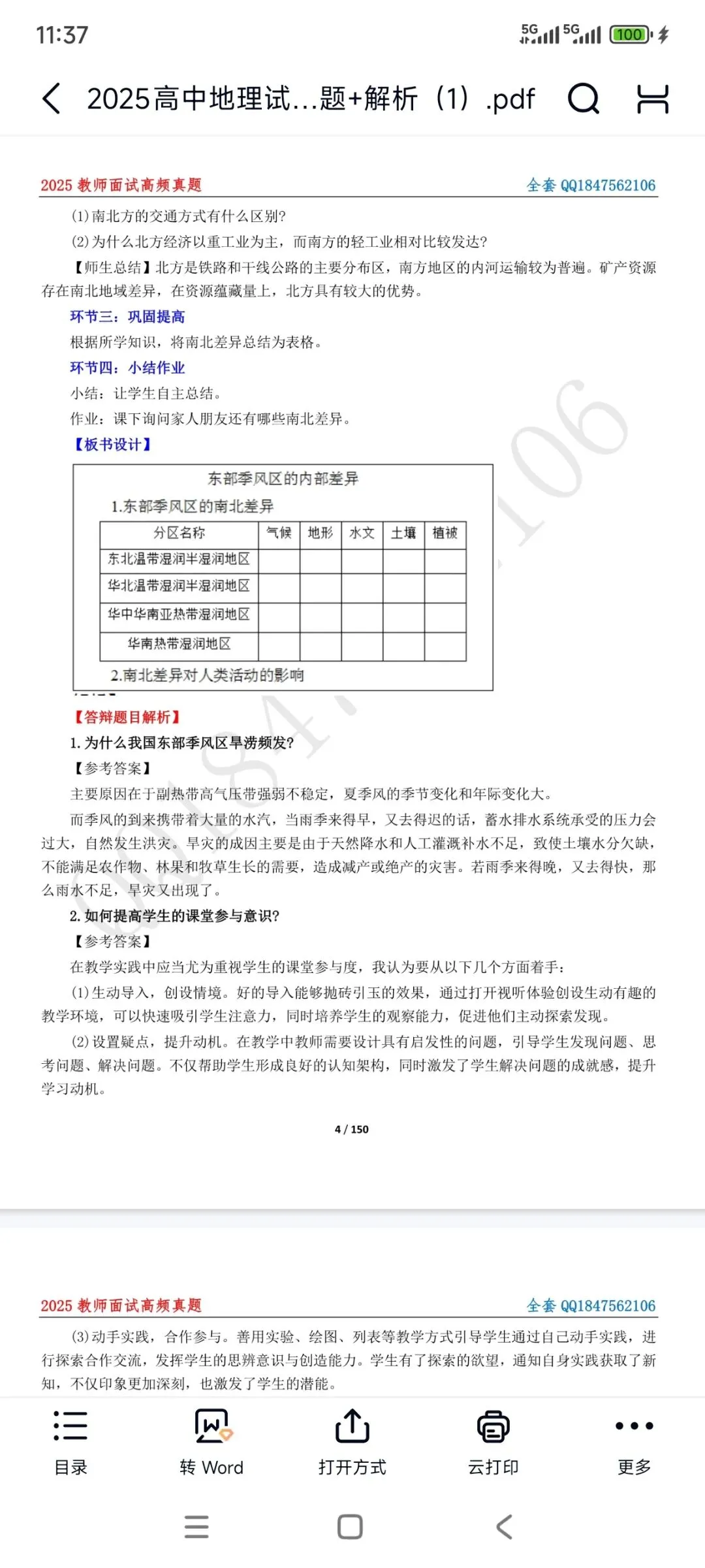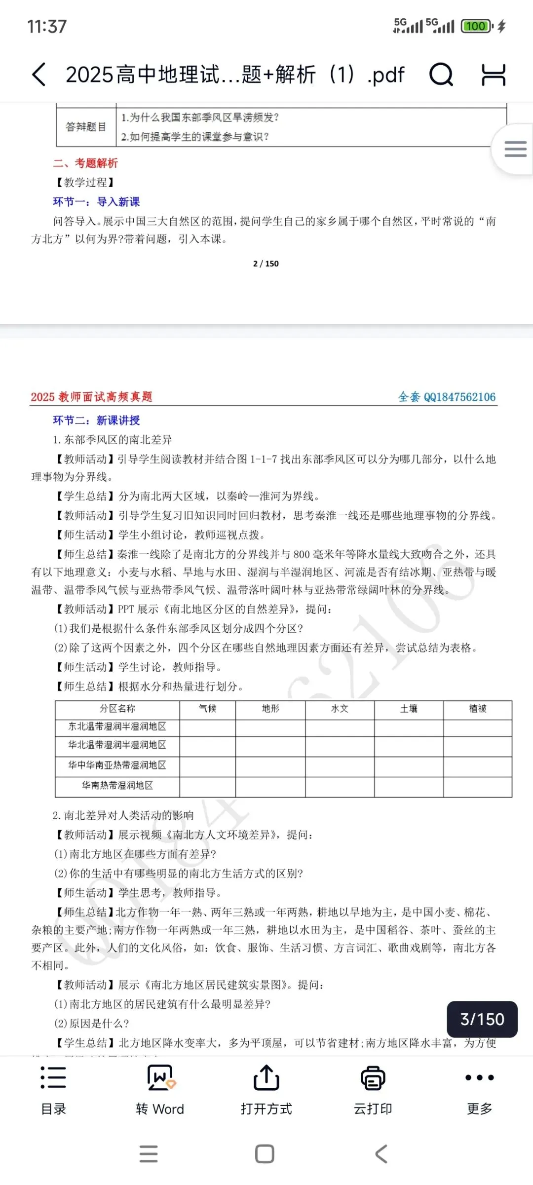 高中地理面试《东部季风区的南北差异》题目+教案+试讲稿+答辩