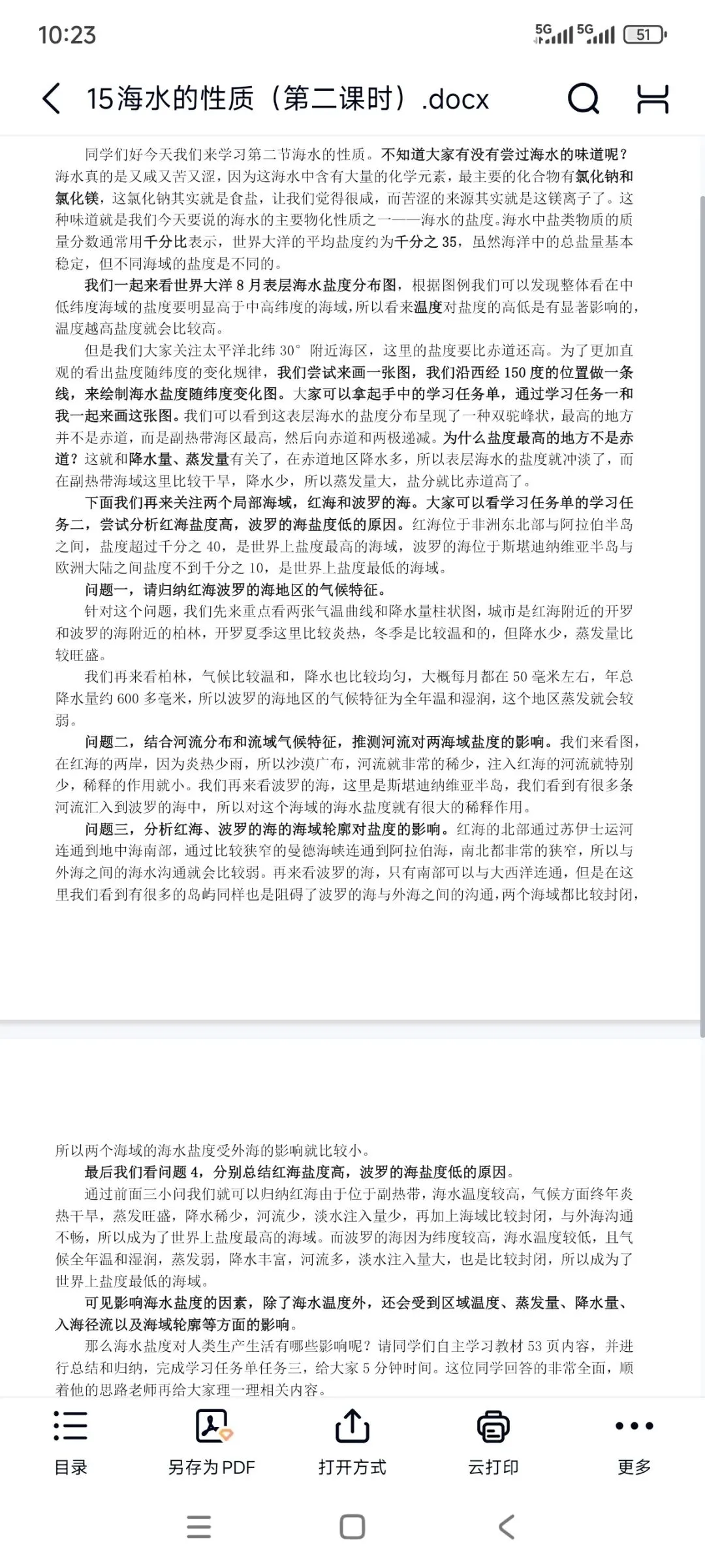 高中地理试讲面试《海水的性质(第二课时)》逐字稿