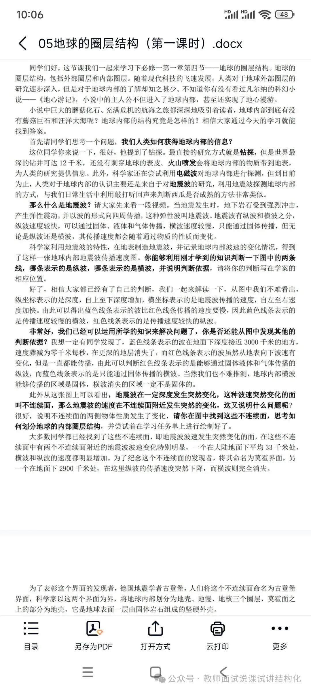 高中地理试讲面试《地球的圈层结构(第一课时)》逐字稿