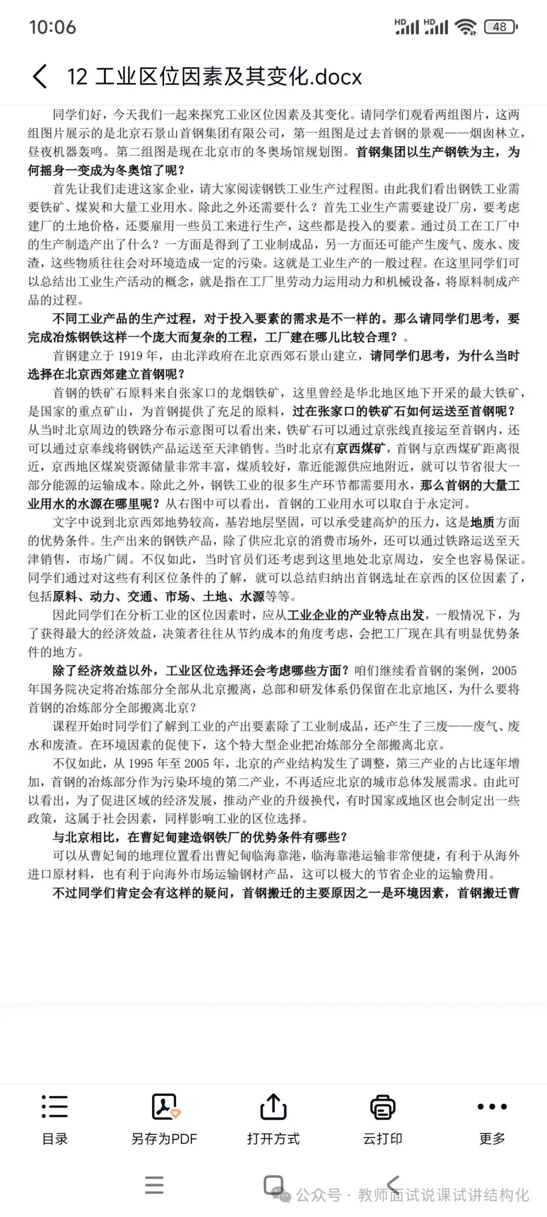 高中地理试讲面试《工业区位因素及其变化》逐字稿
