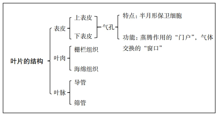 同学们,通过本节课的学习,大家都有哪些收获呀?我听到同学们说了,了解了叶片的结构,还有气孔的结构和功能及其与蒸腾作用的关系。