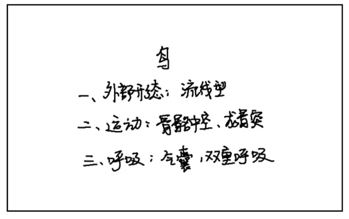 双重呼吸它可以提高气体交换的效率,为鸟的飞翔提供充足的氧气。现在我们已经了解了鸟的呼吸,除此之外,鸟的体温不会随着环境温度的变化而变化,我们把鸟就称之为是恒温动物。恒温动物它就增强了动物对于环境的适应能力,从而来扩大了它们的分布范围。除此之外,鸟它是通过产卵繁殖后代的,对于鸟的特征我们已经了解清楚了。同学们通过本节课的学习能来说一说你的收获是什么吗?我听到同学们说知道了什么是鸟,体温恒定,体表赋予前肢特化成翼,有喙无齿、有气囊辅助呼吸的这一类动物,我们就把它称之为是鸟类,回答得非常准确。