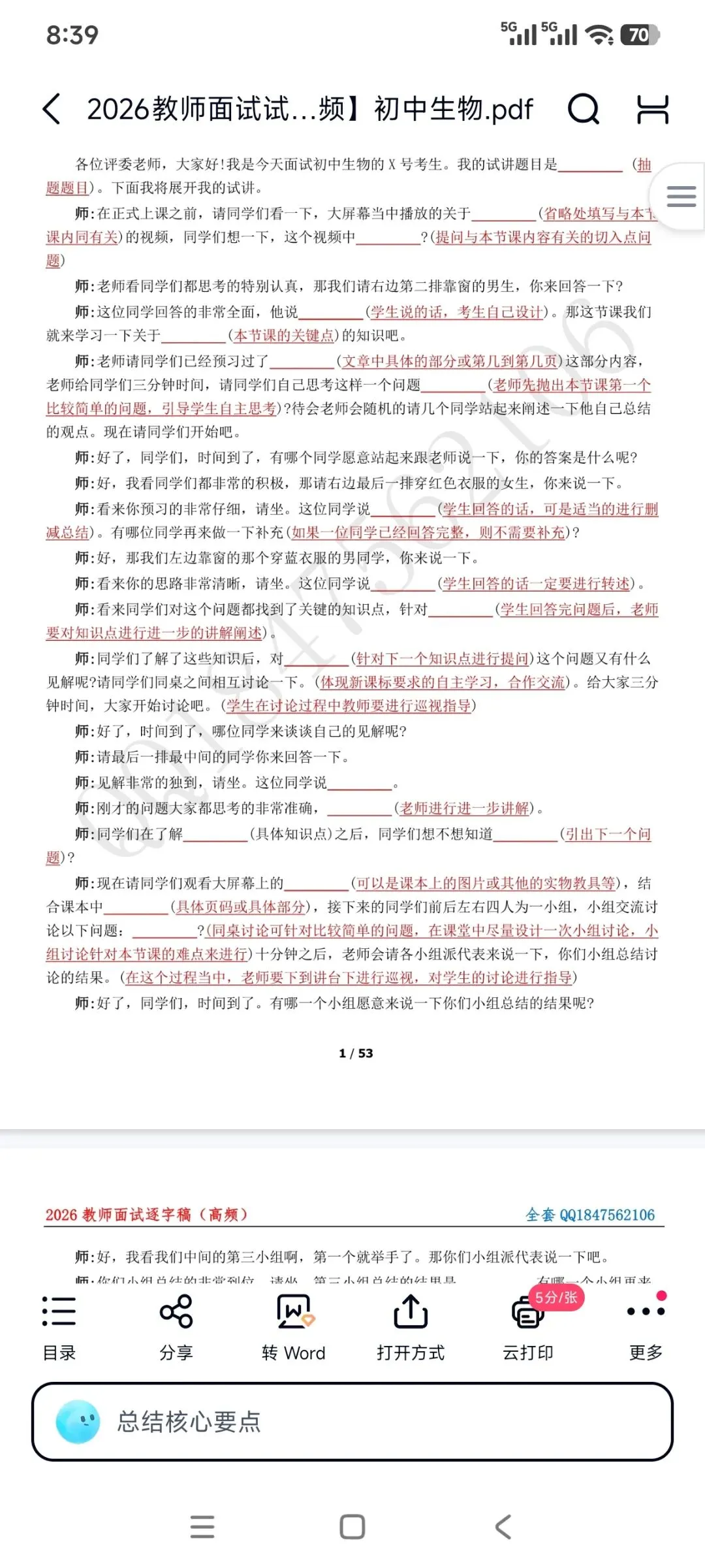 初中生物试讲稿200多篇,包括人教版78年级都有,部分配对试讲视频,还有历年面试真题精选