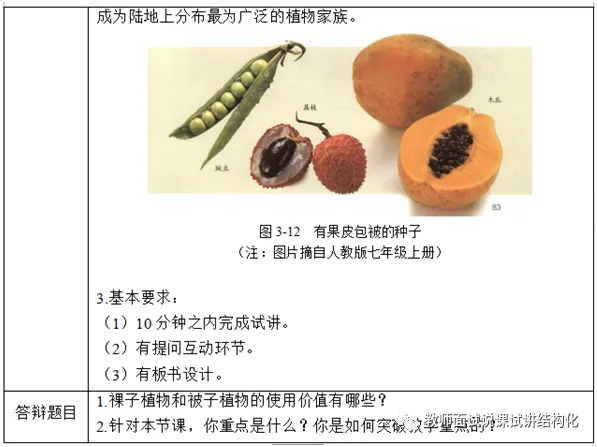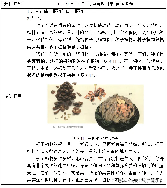初中生物面试《裸子植物和被子植物》题目+教案+试讲稿+答辩