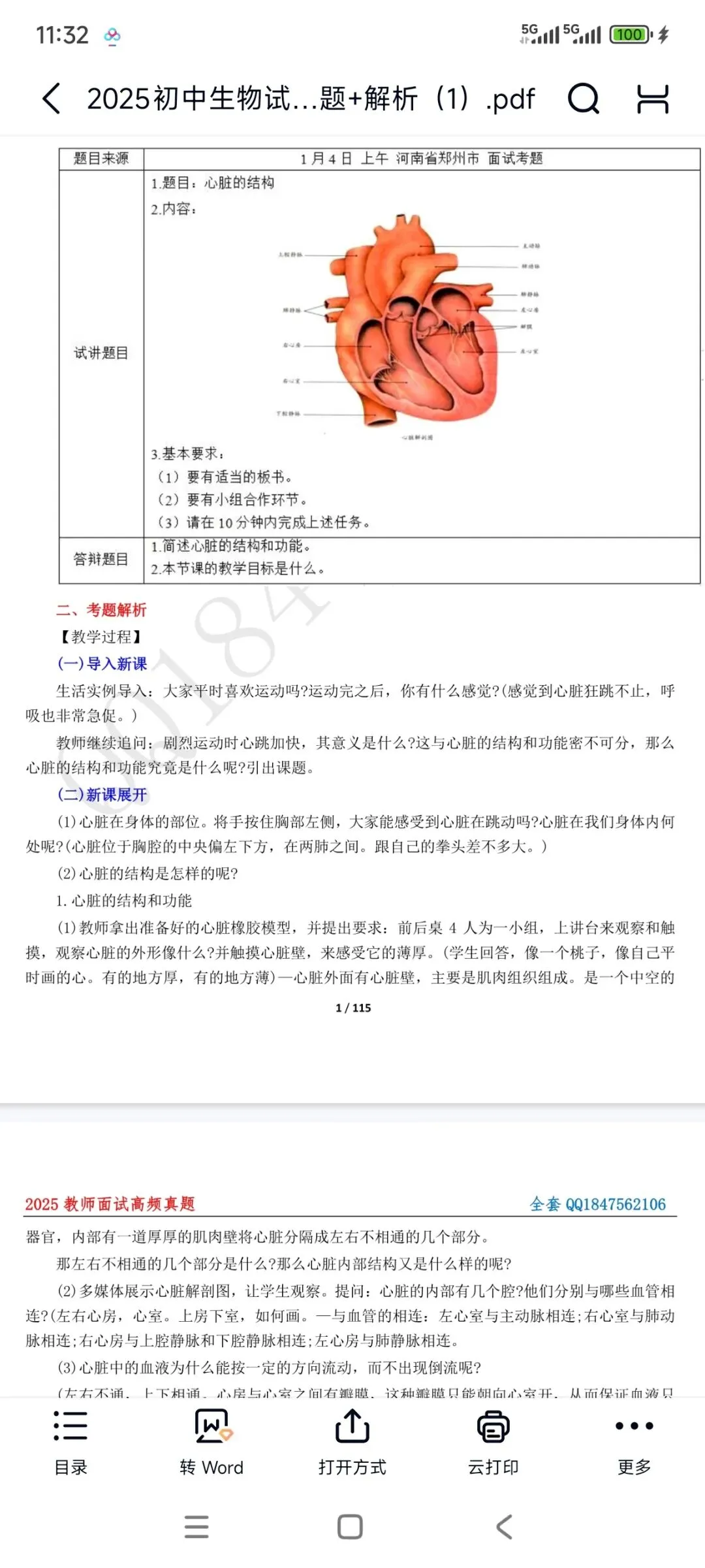 初中生物面试《心脏的结构》题目+教案+试讲稿+答辩