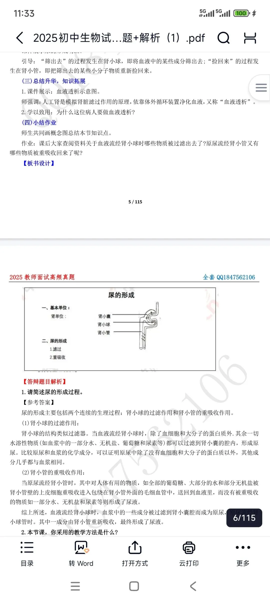 初中生物面试《尿的形成》题目+教案+试讲稿+答辩教案