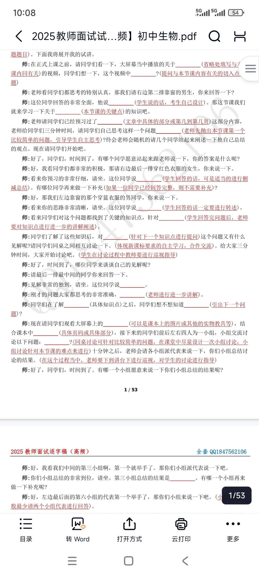 资料包括:初中生物试讲示范课+试讲逐字稿+试讲真题+答辩+结构化押题等