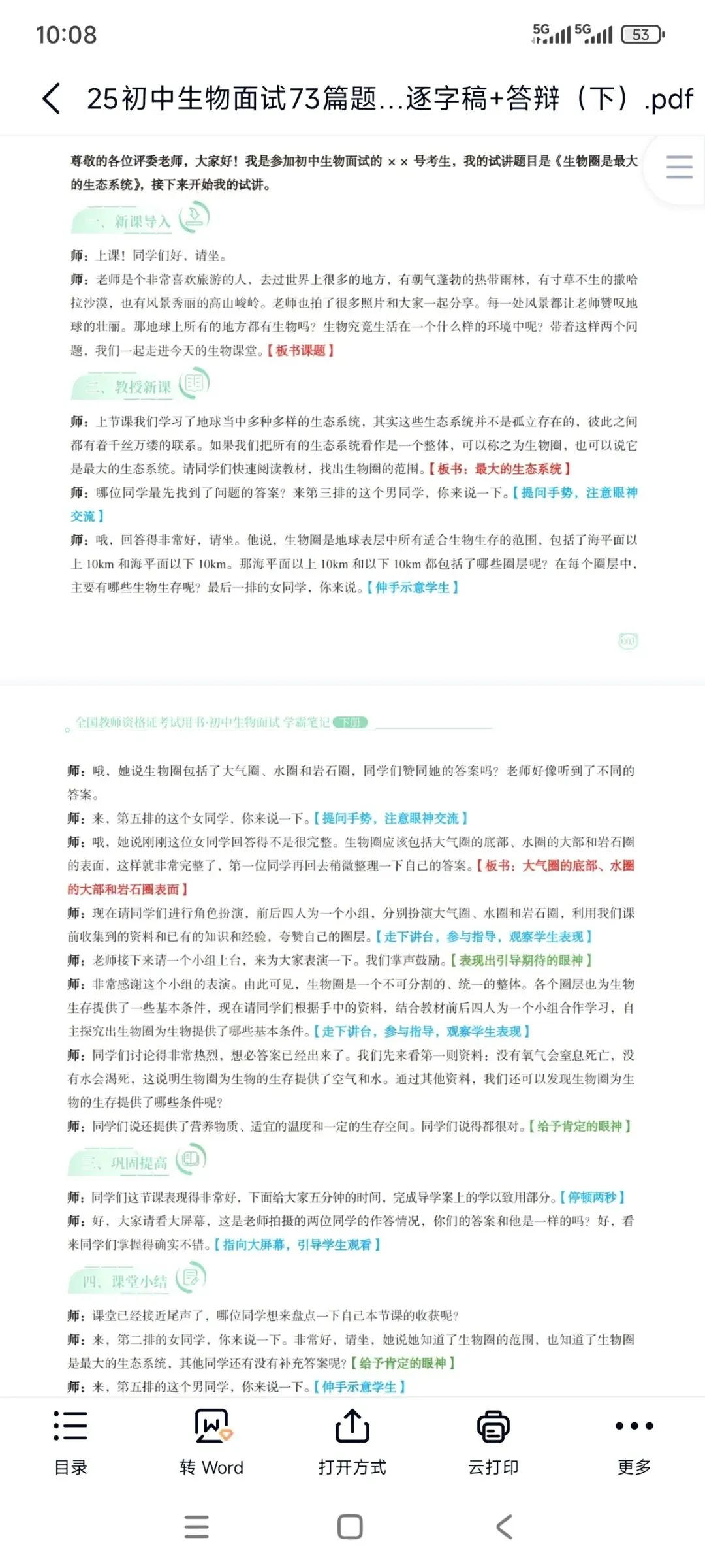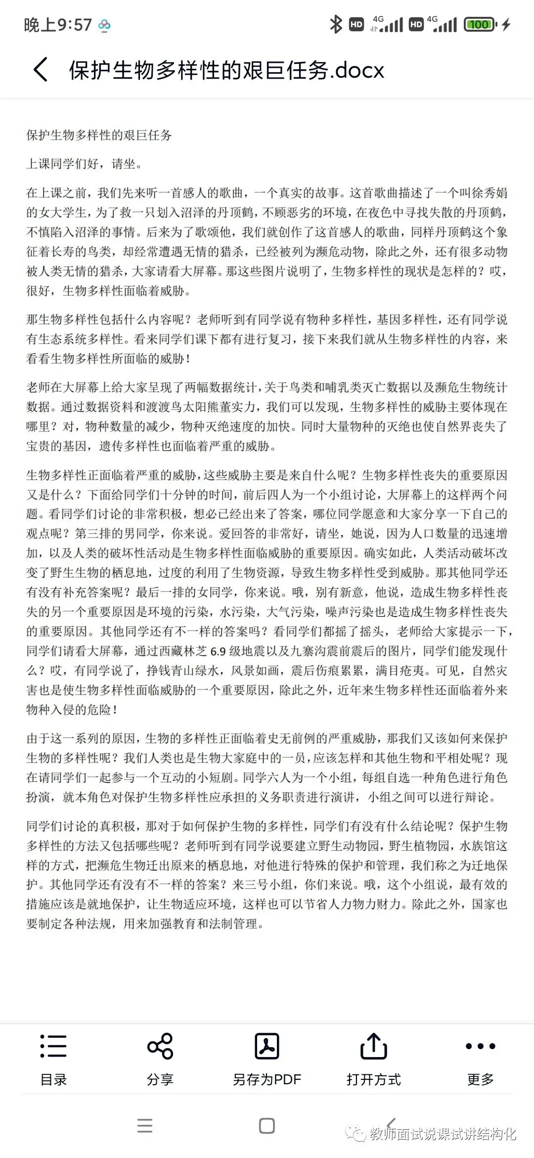 25面试逐字稿|初中生物试讲稿150多篇有78全册+试讲模板