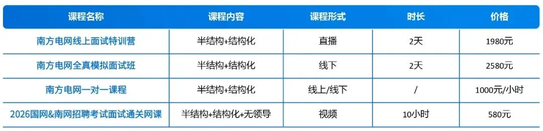 结合同学们的不同需求,根据对南方电网面试形式和考察内容的深度剖析,思格特推出了不同类型的课程: