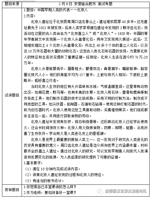 初中历史《北京人的特征》试讲视频+配套简案+试讲逐字稿
