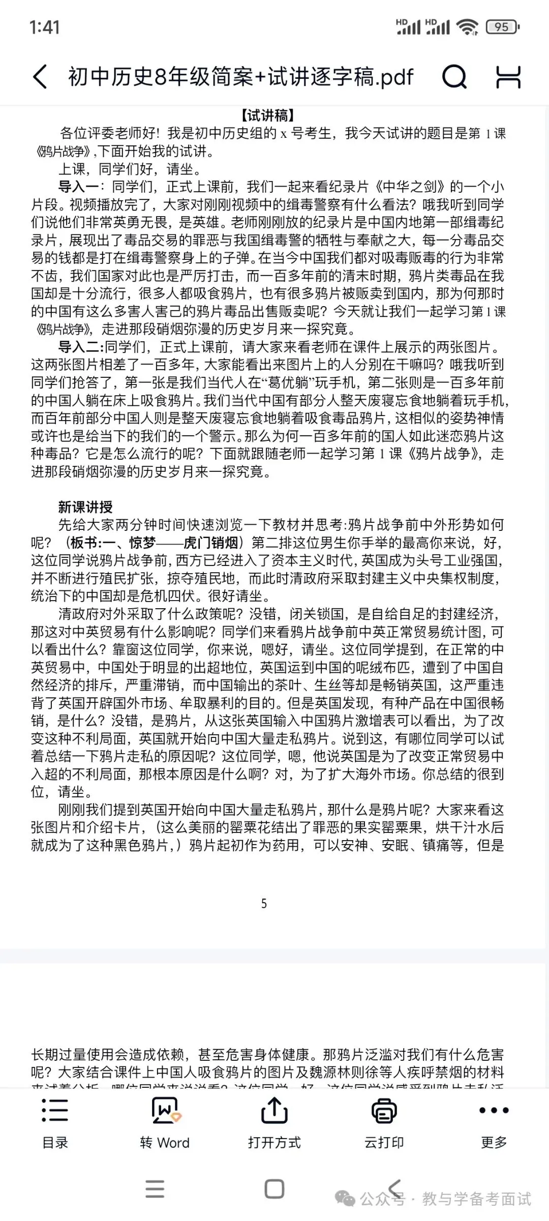 初中历史面试试讲《鸦片战争》逐字稿