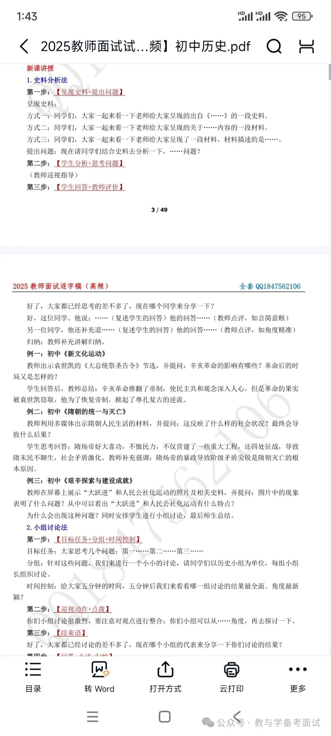 资料包括:试讲示范课+试讲逐字稿+试讲面试真题+答辩+结构化押题等