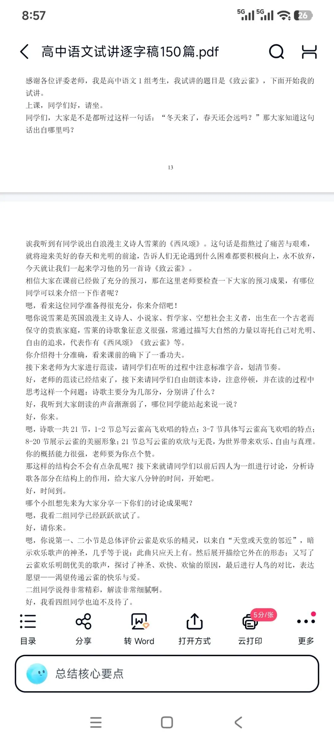 高中语文试讲稿,高中五册基本都有,部分配套试讲视频,还有历年面试真题精选
