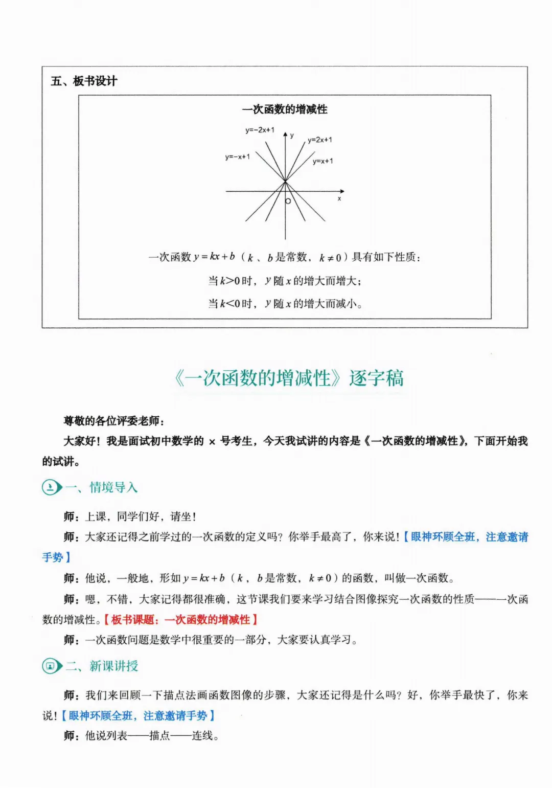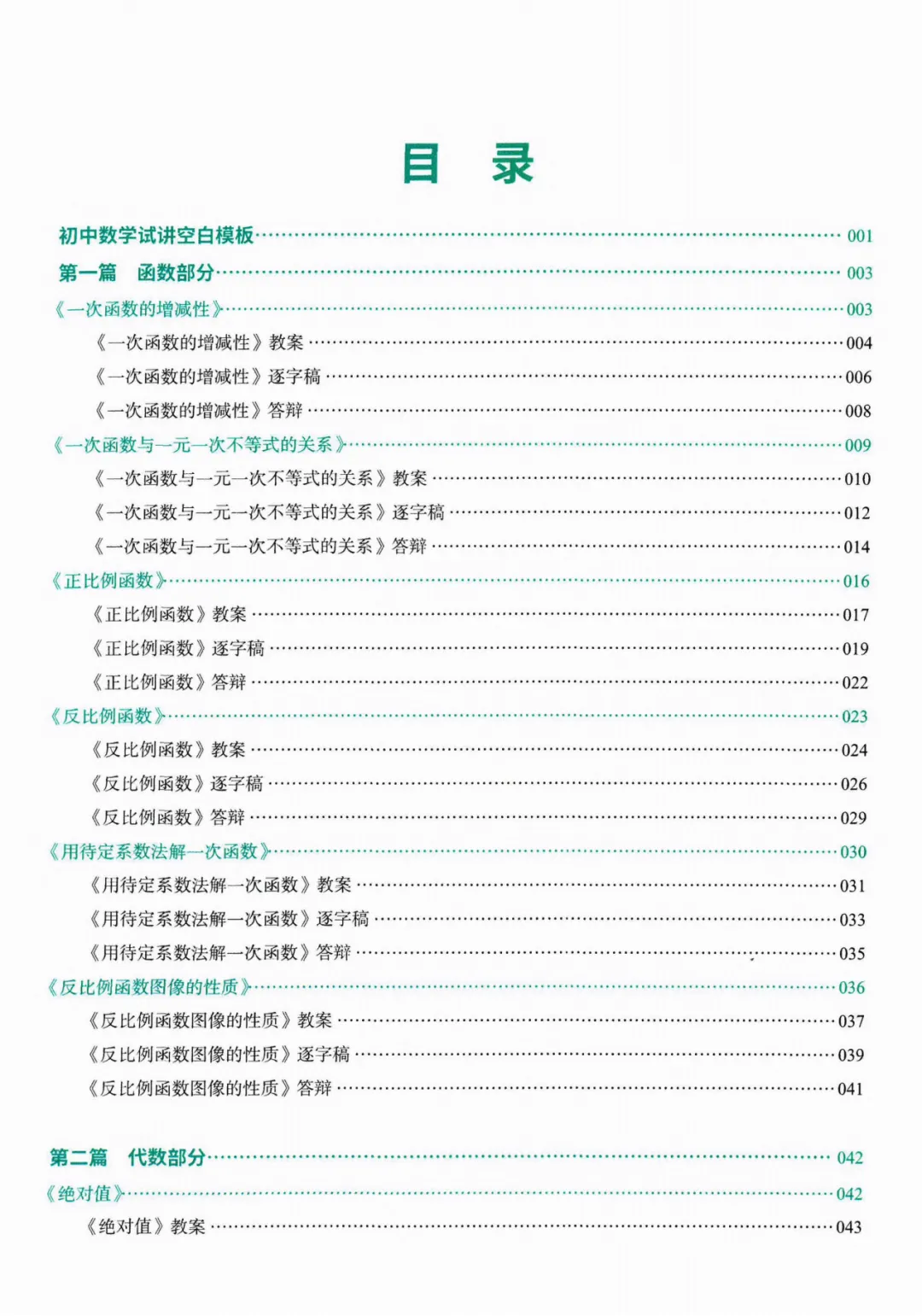 >26上教资面试初中数学试讲逐字稿405篇+结构化+答辩+试讲历年+真人试讲示范
