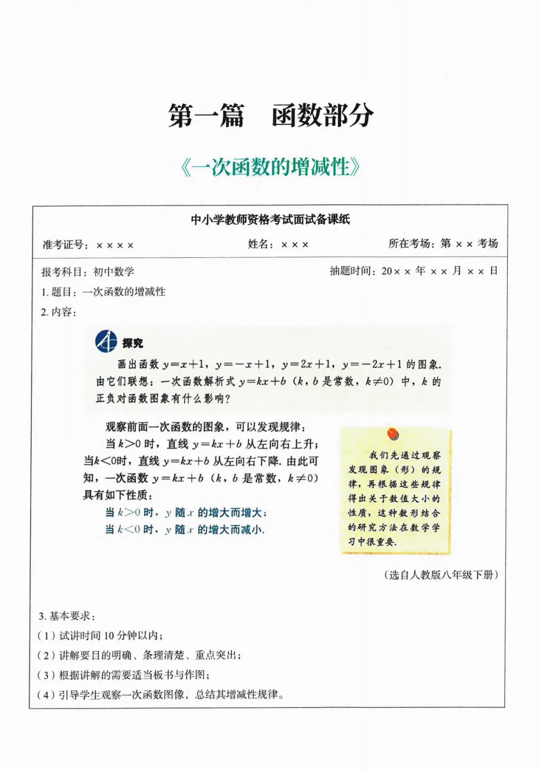 26上教资面试初中数学试讲逐字稿405篇+结构化+答辩+试讲历年+真人试讲示范