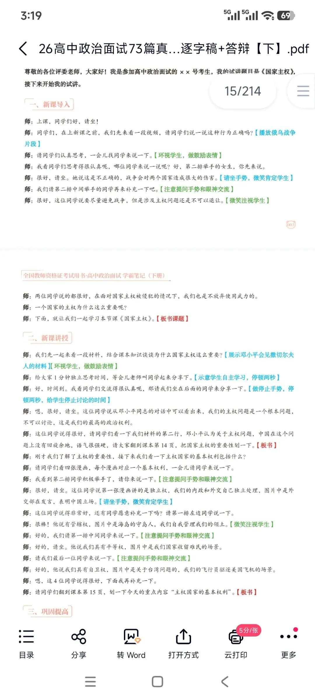 26年5月教资面试高中政治试讲逐字稿220篇+结构化+答辩+试讲历年+真人试讲示范